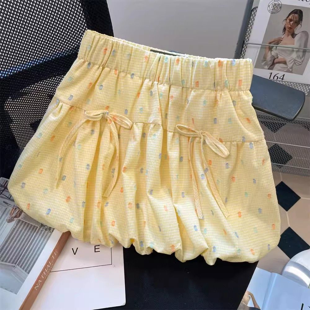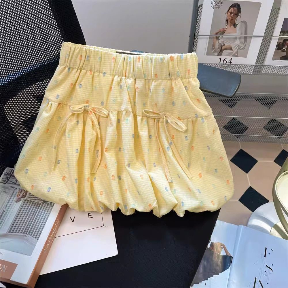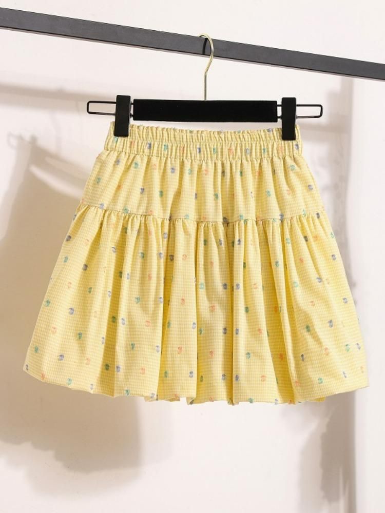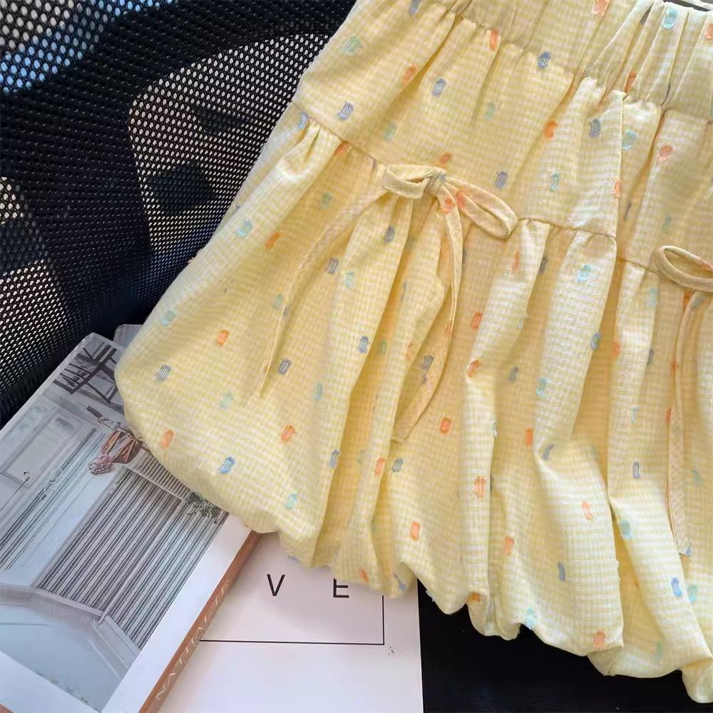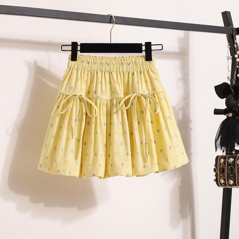 2025 여자 노란색 꽃 무늬 하이 웨이스트 지방 슬리밍 프릴 a 라인 플리츠 스커트 여름 캐주얼 공주 스커트 유행스토어 가기