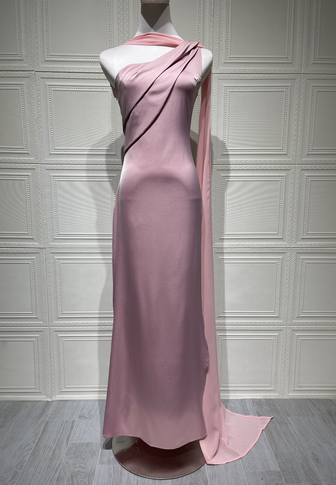 2025 유럽과 미국의 새로운 고급 새틴 드레스 피쉬테일 연회 슬림핏 우아한 연예인 드레스 여성 슬로프 숄더스토어 가기
