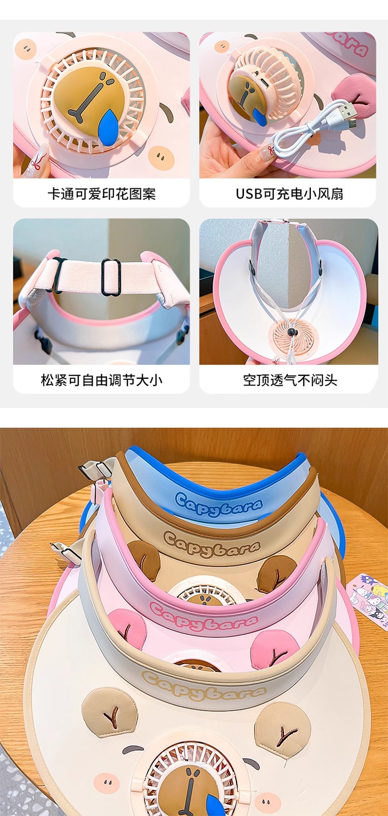 Kapibala 어린이용 팬이 있는 태양 모자, 충전식 모자, 소녀용 태양 모자, 빈 모자, 소녀용 태양 모자