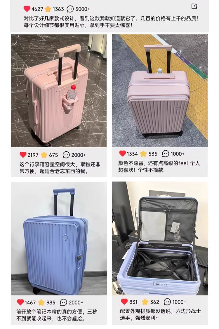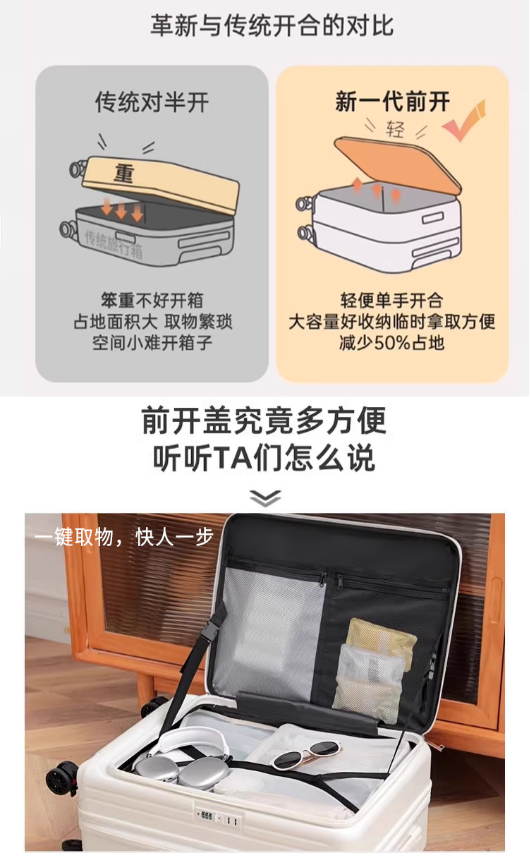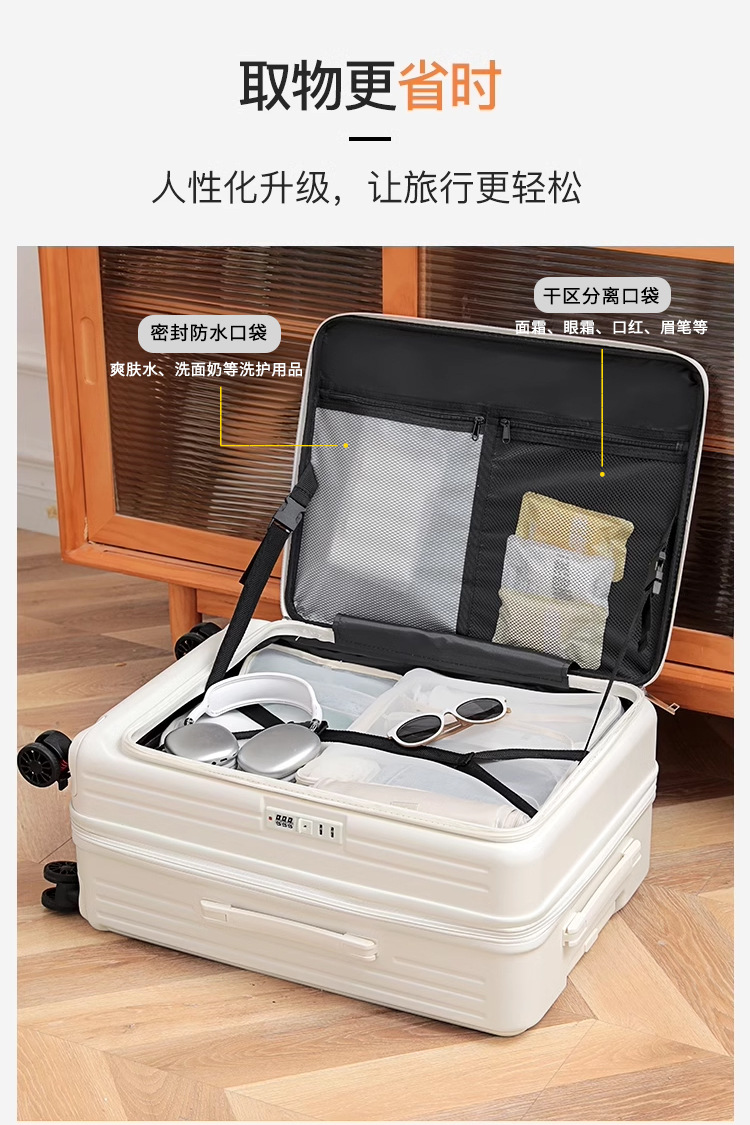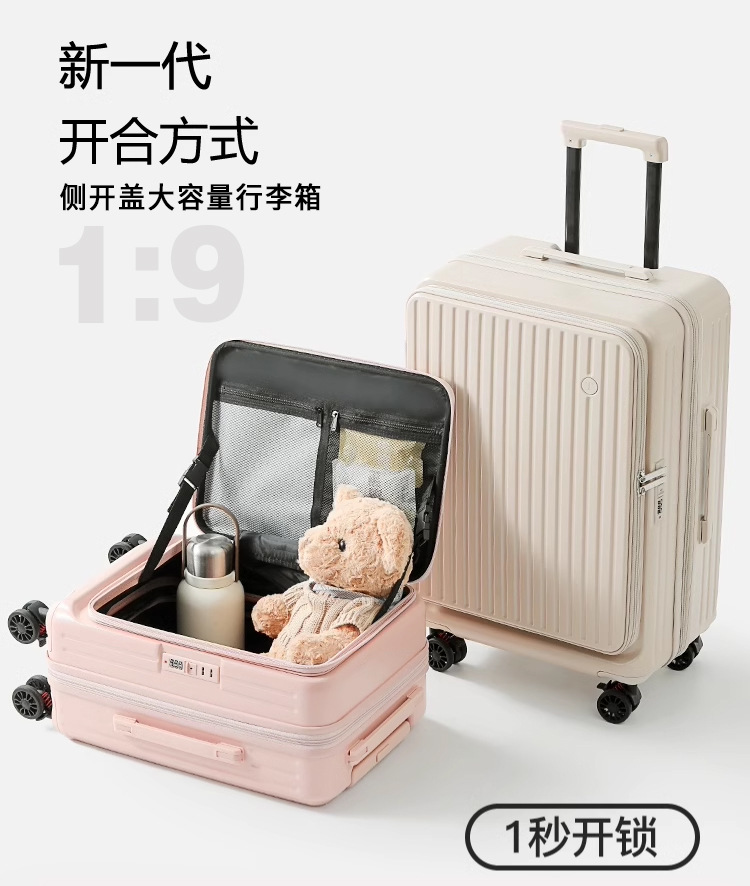 여성용 측면 개방형 플랫 수하물 가방 2025 남성용 새로운 확장 가능한 다기능 트롤리 케이스 20inch 탑승 가방스토어 가기