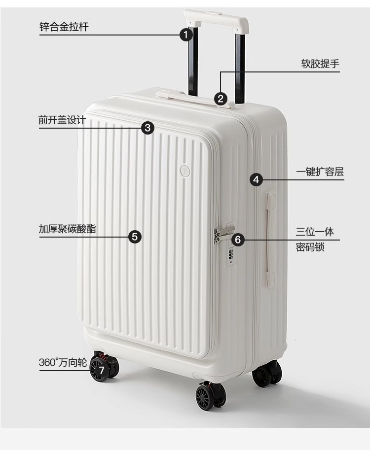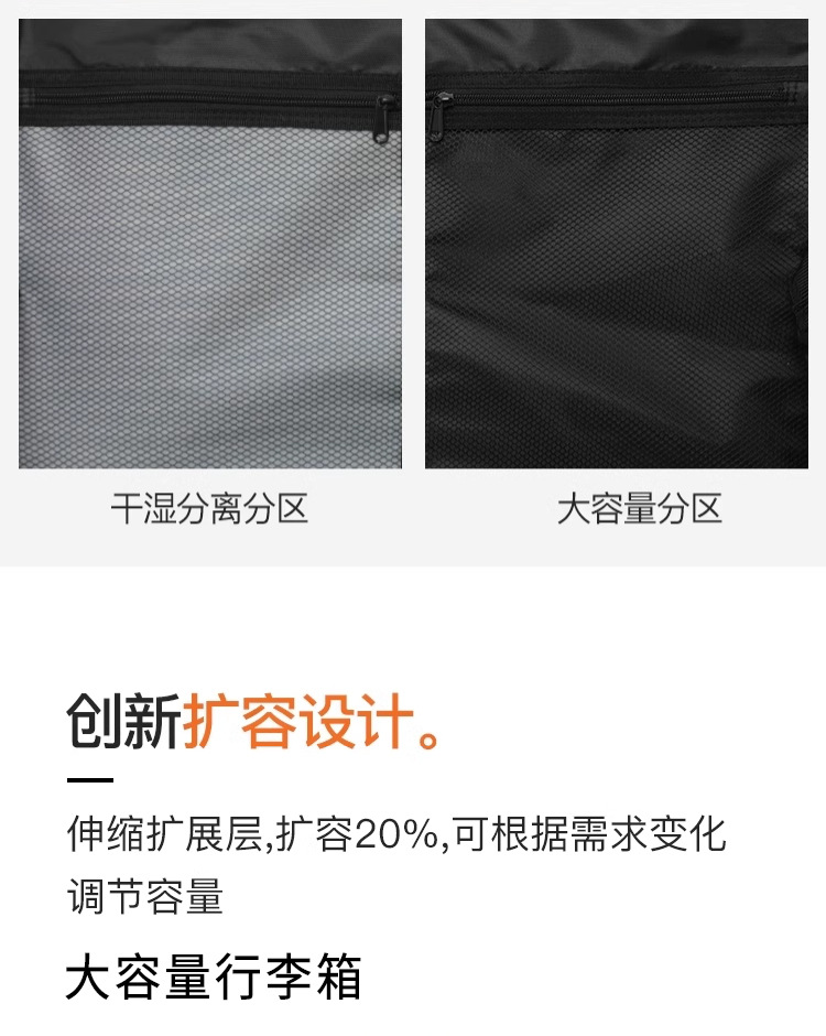 • 20inch 확장 가능 + 이중 방폭 지퍼 + 컵 홀더 + 후크