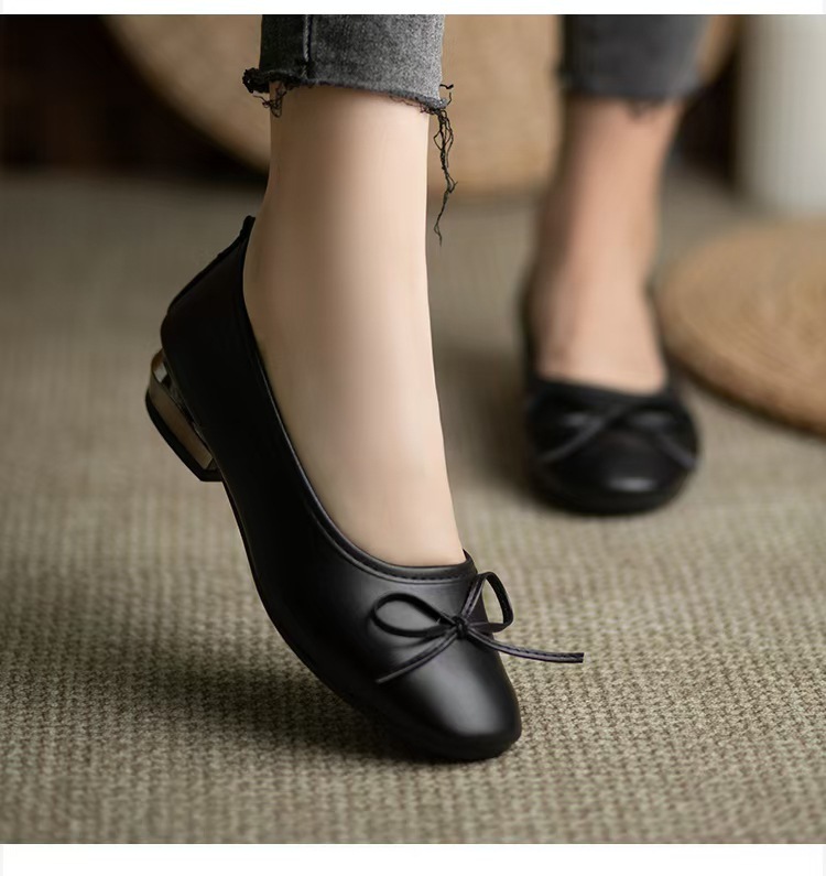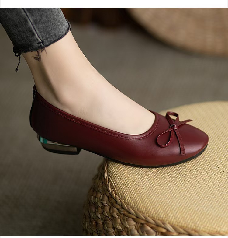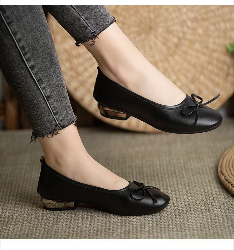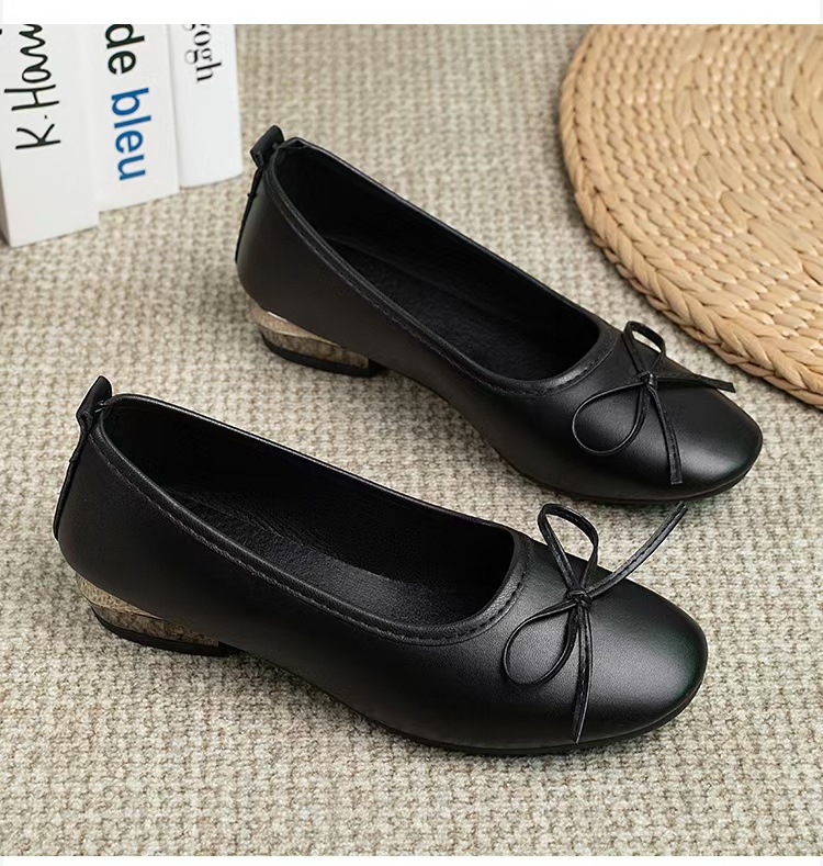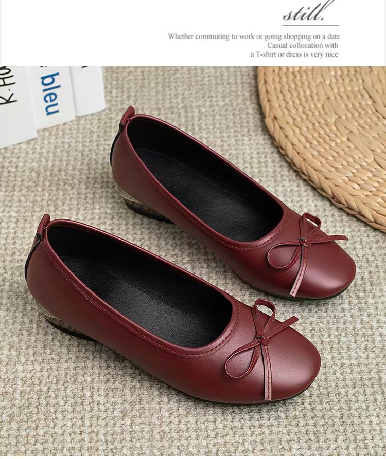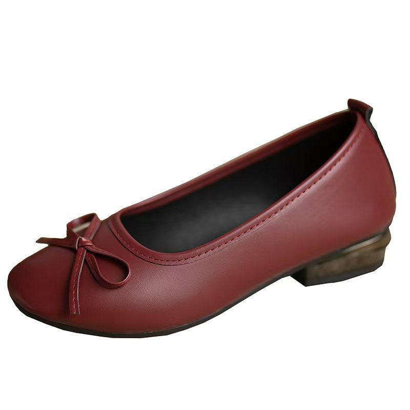 여름 신상 부드러운 가죽 부드러운 밑창 캐주얼 비니 슈즈, 얕은 굽의 싱글 슈즈, 가볍고 미끄럼 방지, 낮은 굽의 슬립온 엄마 가죽 신발스토어 가기