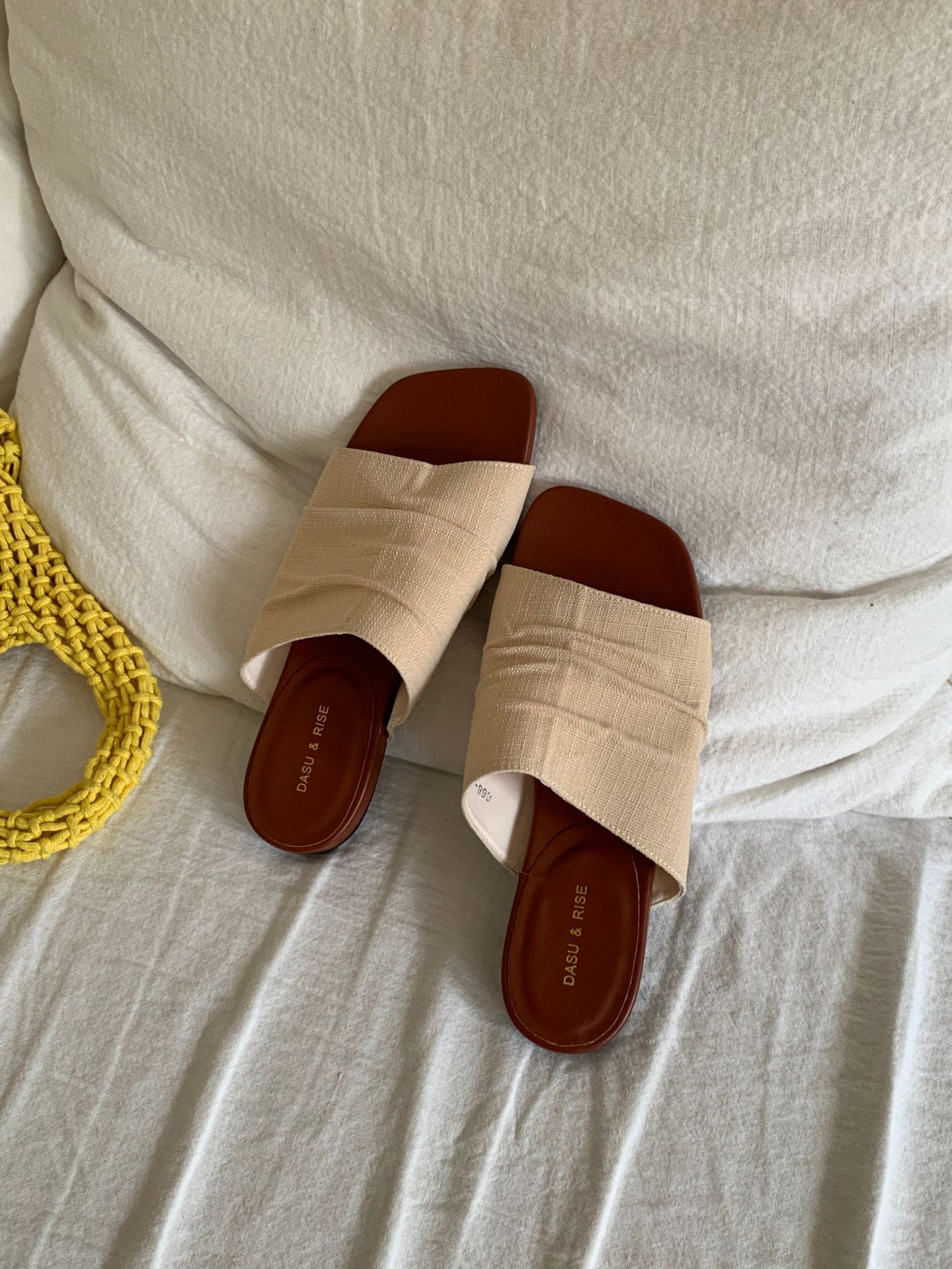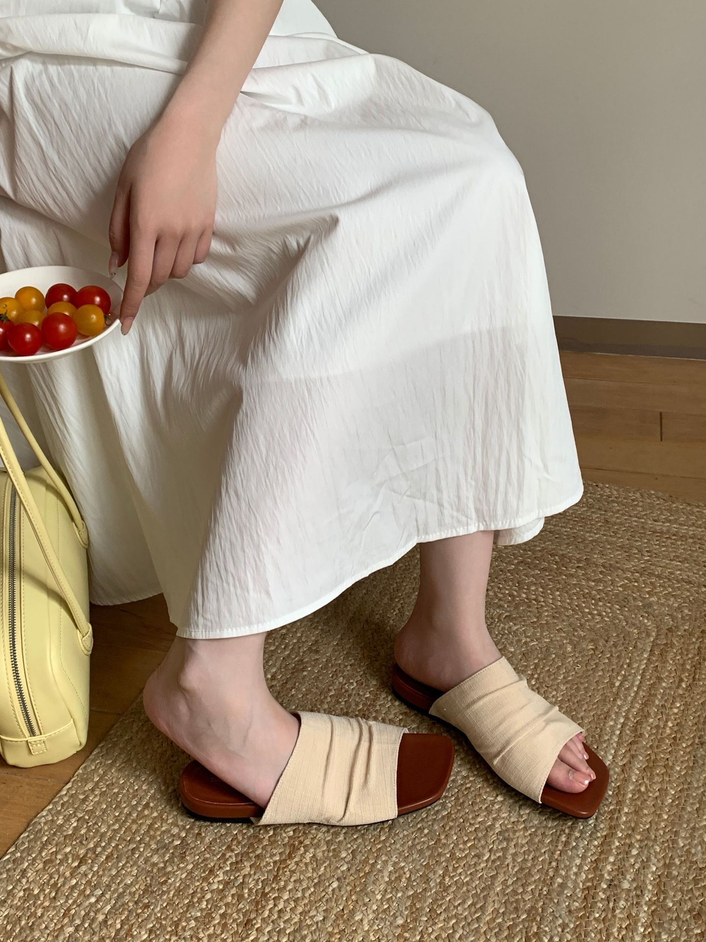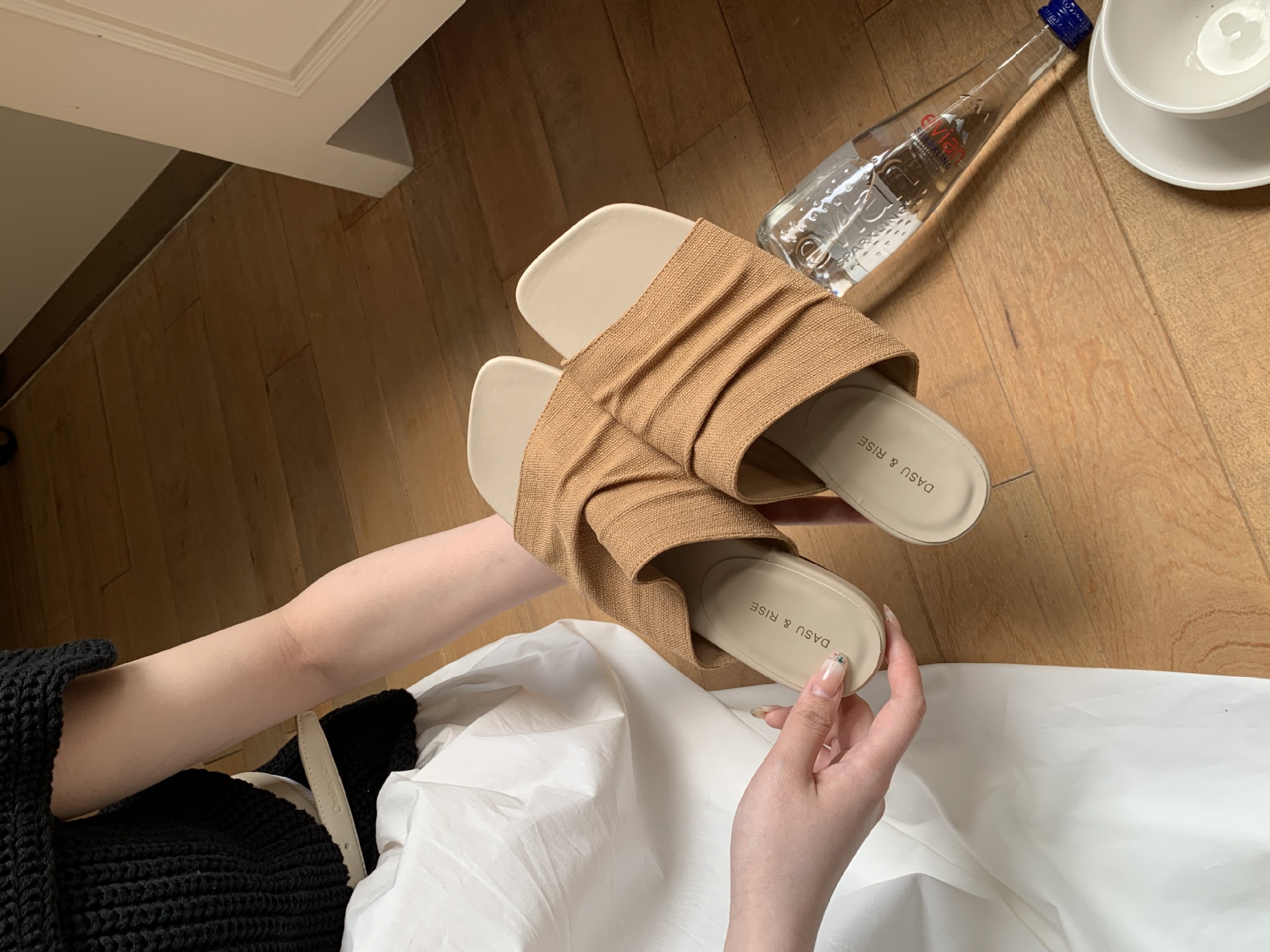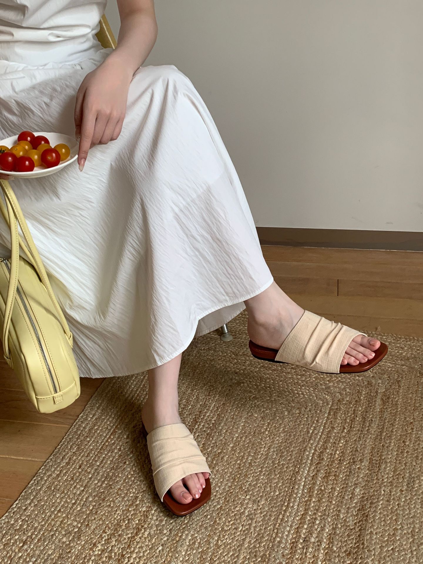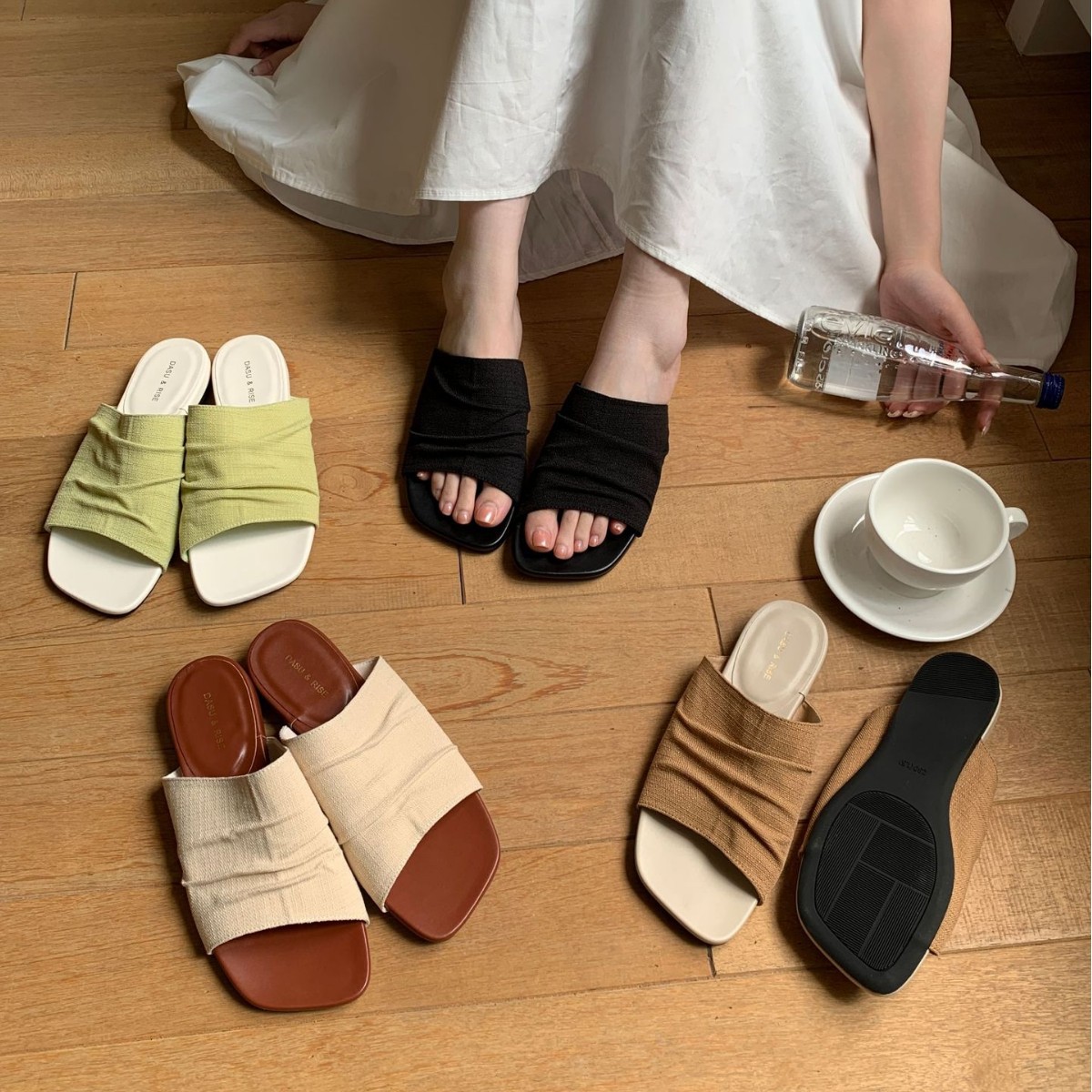 스퀘어 러플 캐주얼 홀리데이 비치 플랫 간단한 샌들 여성 슬리퍼 여름 2025 새로운 스타일