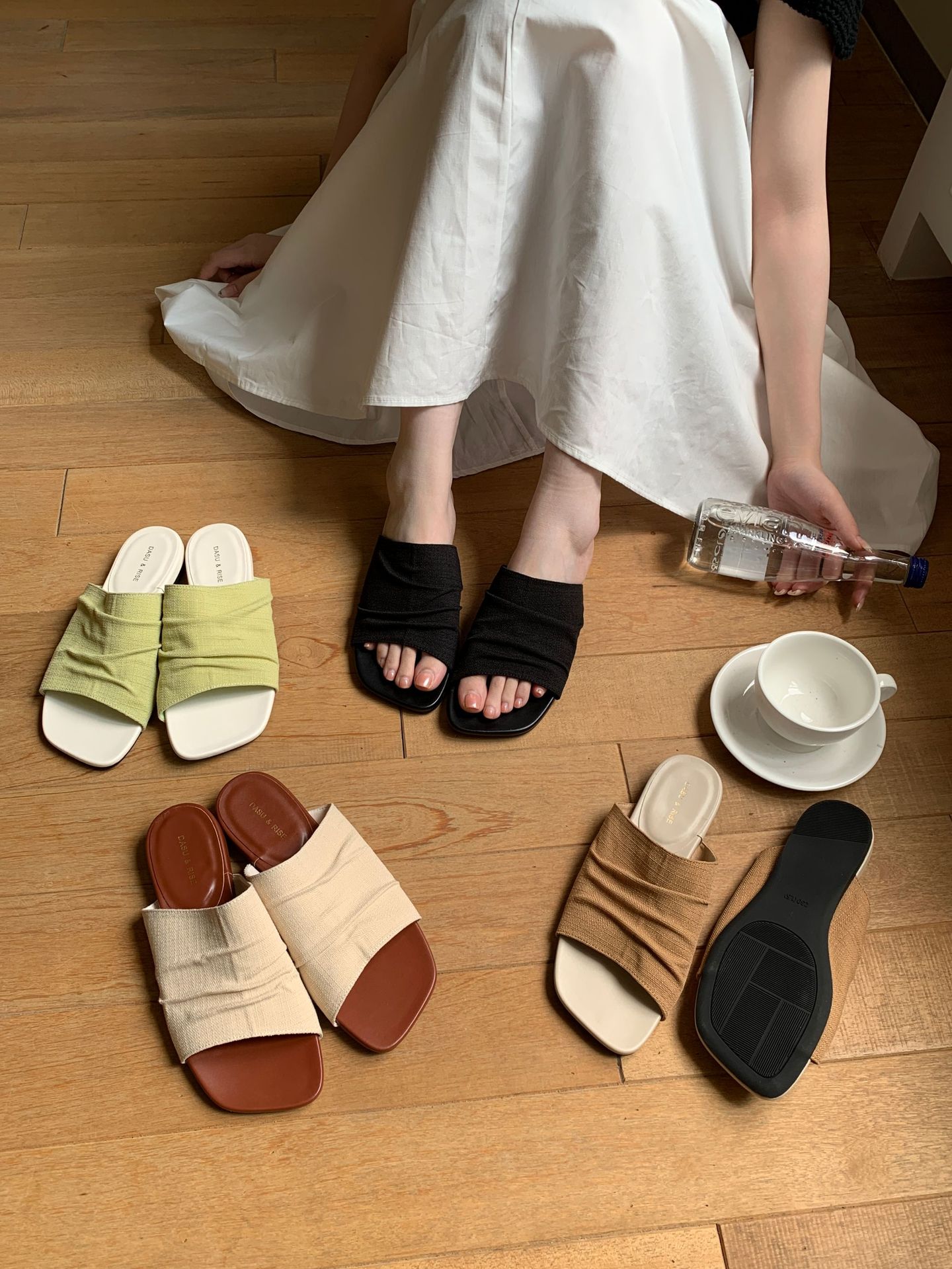 스퀘어 러플 캐주얼 홀리데이 비치 플랫 간단한 샌들 여성 슬리퍼 여름 2025 새로운 스타일스토어 가기