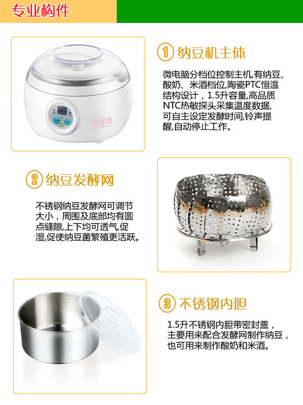 Fukona Yuan 전문 낫토 기계 가정용 완전 자동 지능형 낫토 요구르트 기계 낫토 박테리아가 포함된 스테인레스 스틸 라이너