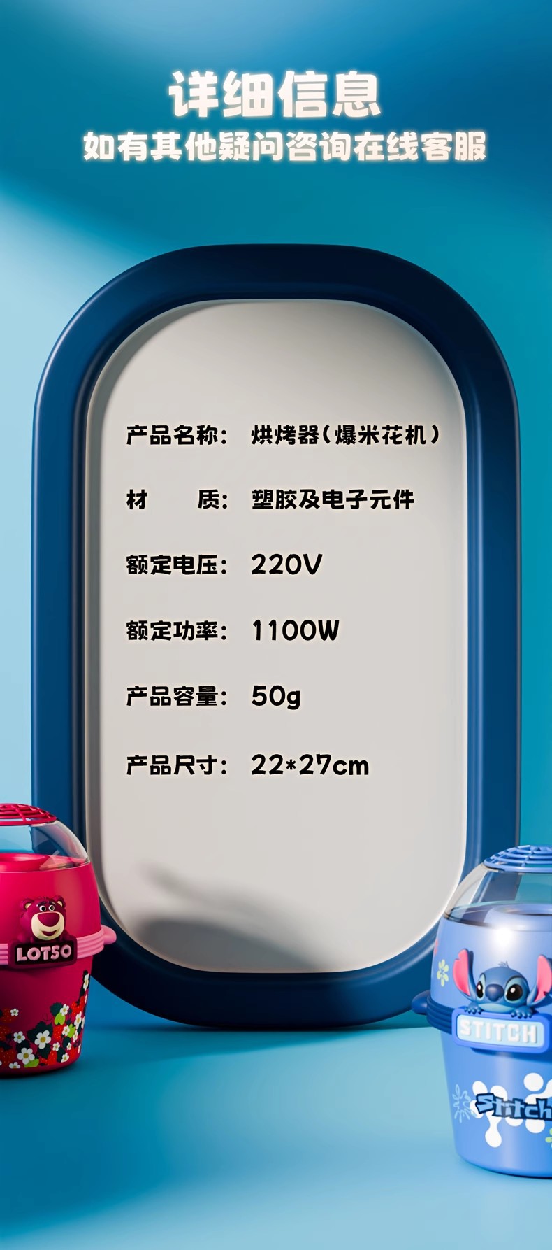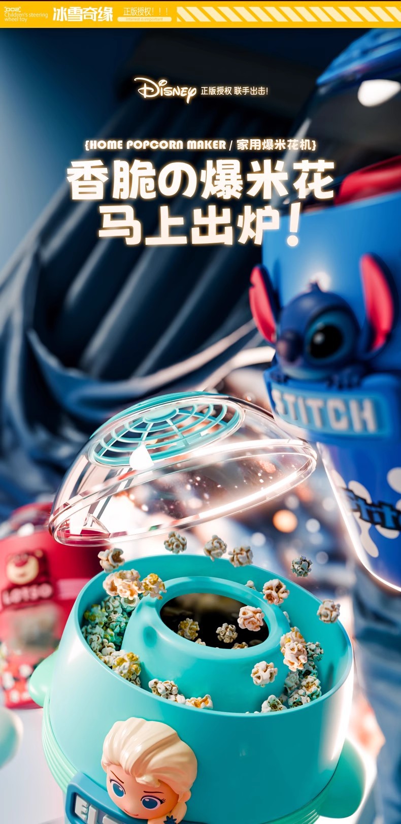 디즈니 정품 공인 스티치 얼음과 눈 딸기 곰 테마 팝콘 기계 소형 주방 세트 주방 식기