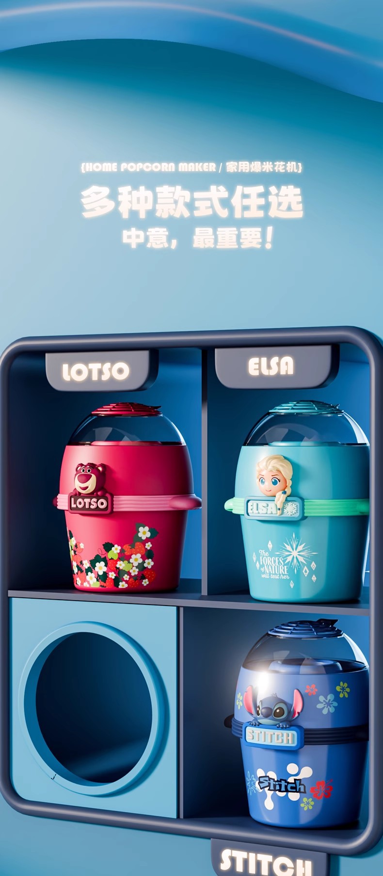디즈니 정품 공인 스티치 얼음과 눈 딸기 곰 테마 팝콘 기계 소형 주방 세트 주방 식기스토어 가기