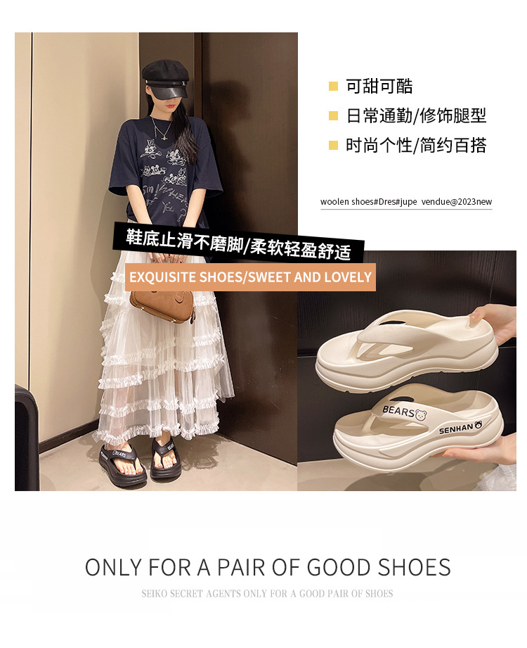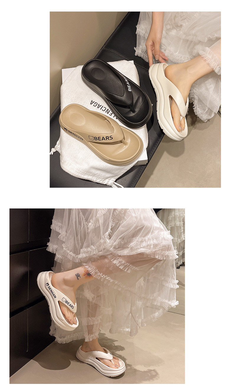 여름철 아우터로 입기 좋은 솔리드 컬러 헤링본 여성 슬리퍼, 미끄럼 방지 두꺼운 밑창, 패셔너블한 부드러운 밑창 비치 슬리퍼, 여성용 키높이 슬리퍼스토어 가기
