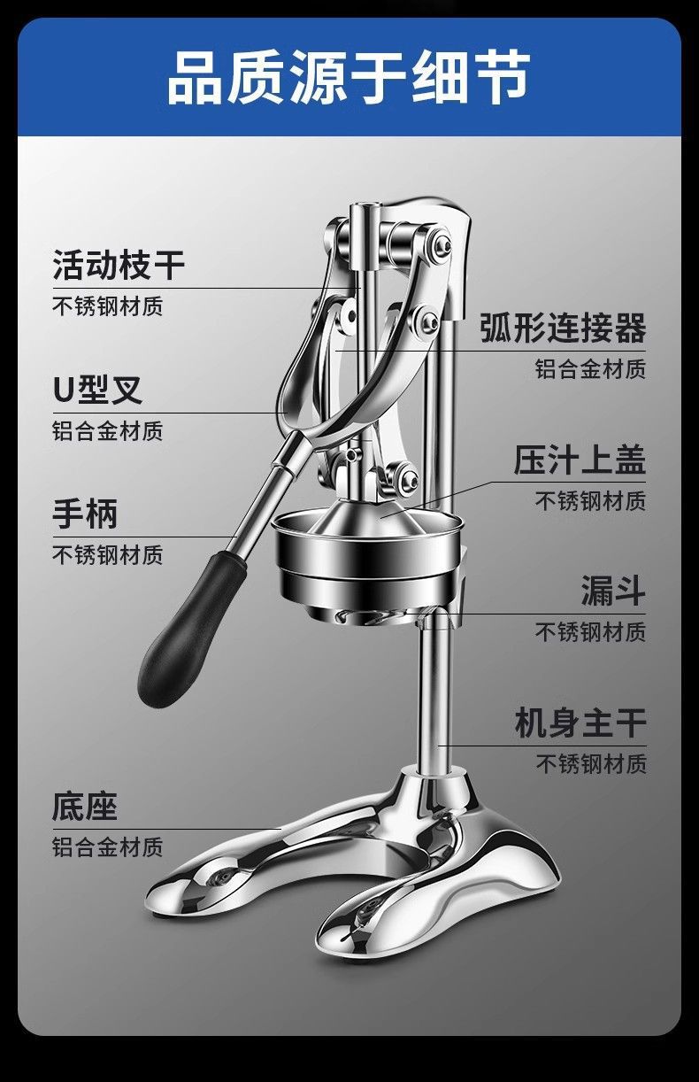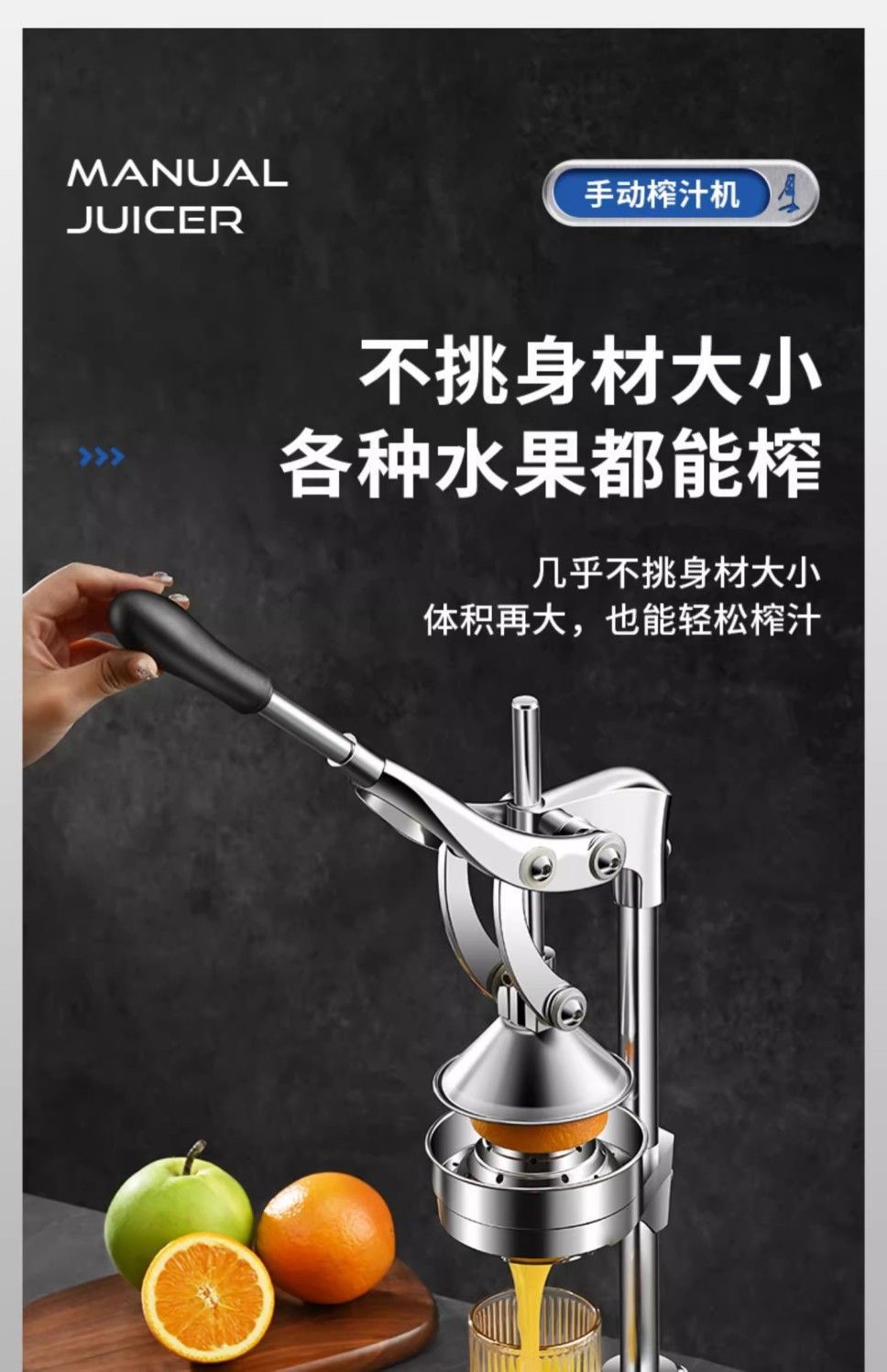 수동 Juicer Stall 플랫 헤드 스테인레스 스틸 스퀴저 쥬서 상업용 과일 신선한 오렌지 주스 압착기