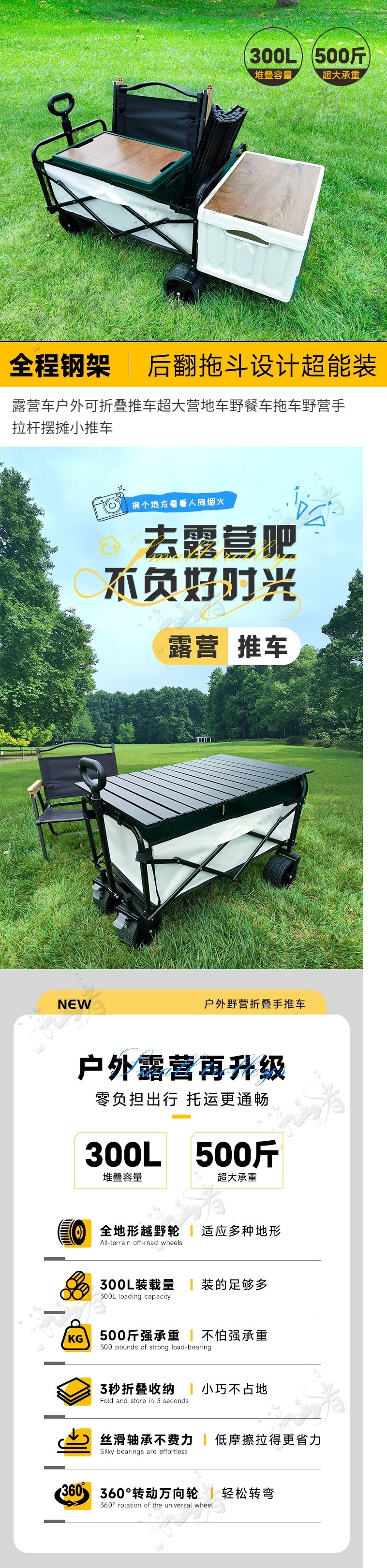 캠핑 카트 접이식 야외 핸드 푸시 피크닉 카트 휴대용 캠프 트레일러 트롤리 다기능 캠핑 스톨 카트스토어 가기