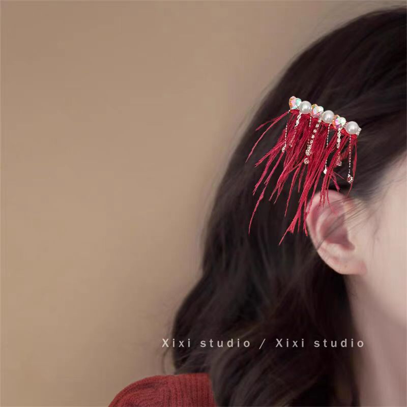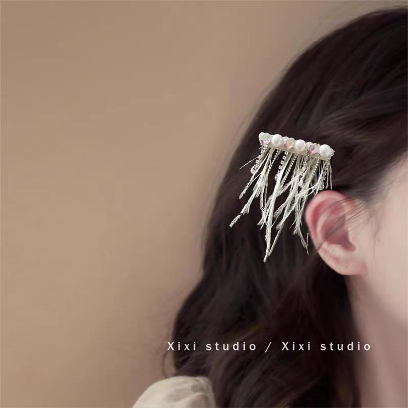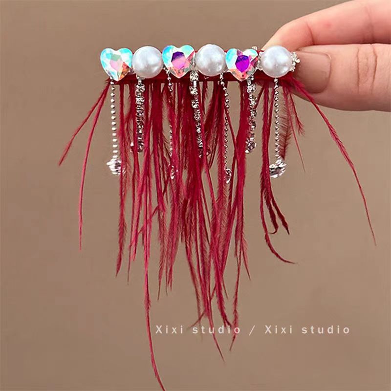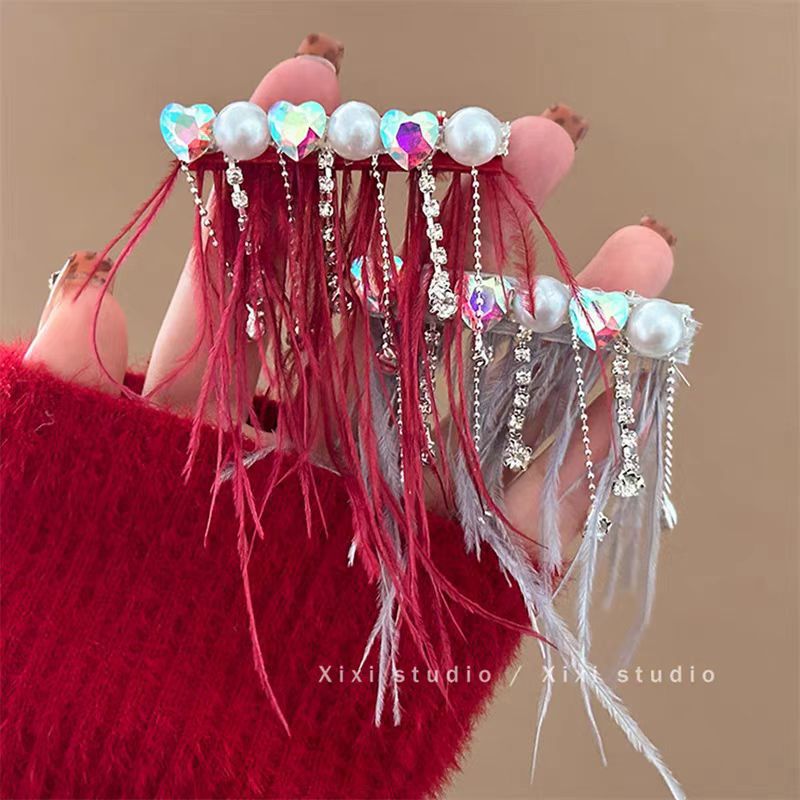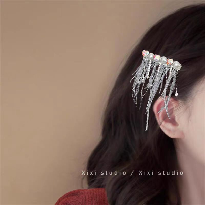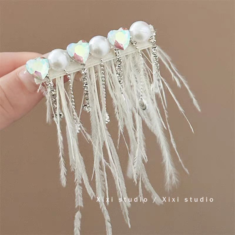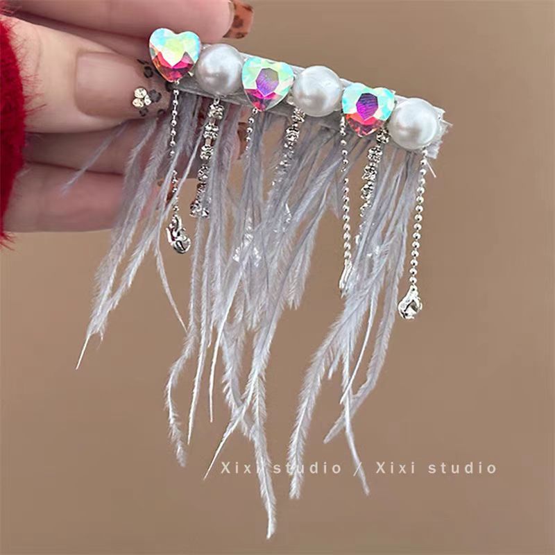 깃털 술 머리핀 여성 빛 고급 고급 하이 엔드 라인스톤 사랑 진주 머리핀 Ins 패셔너블 올 매치 사이드 클립 트렌디스토어 가기