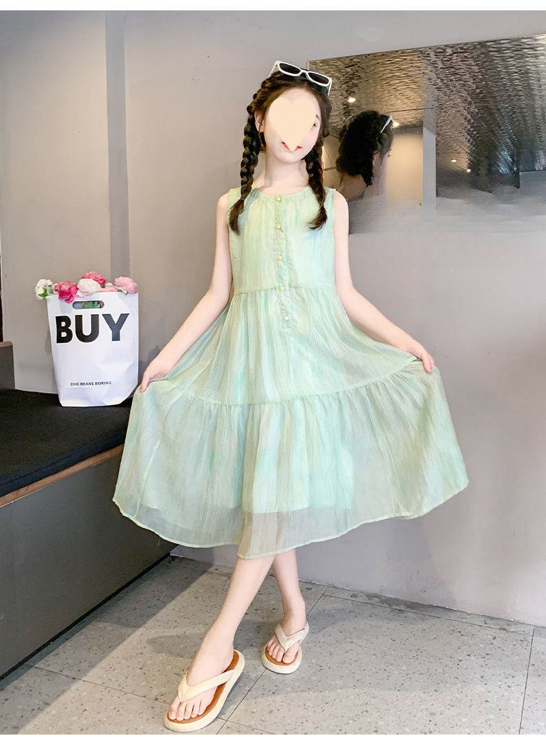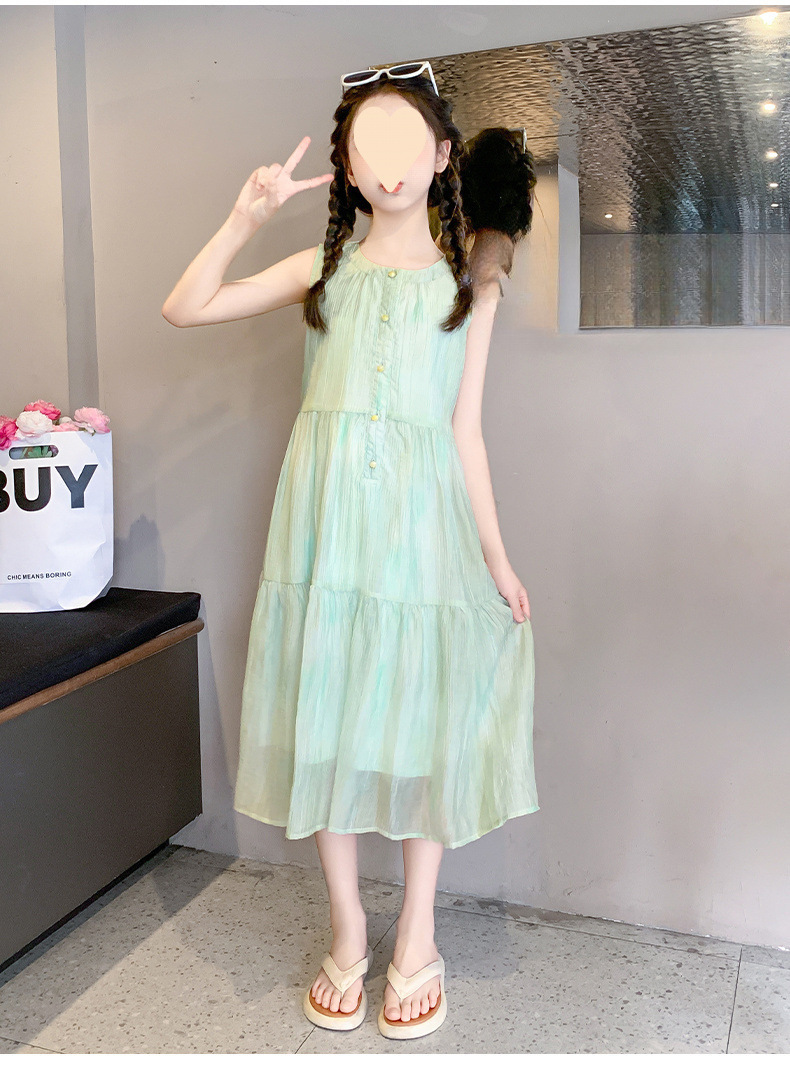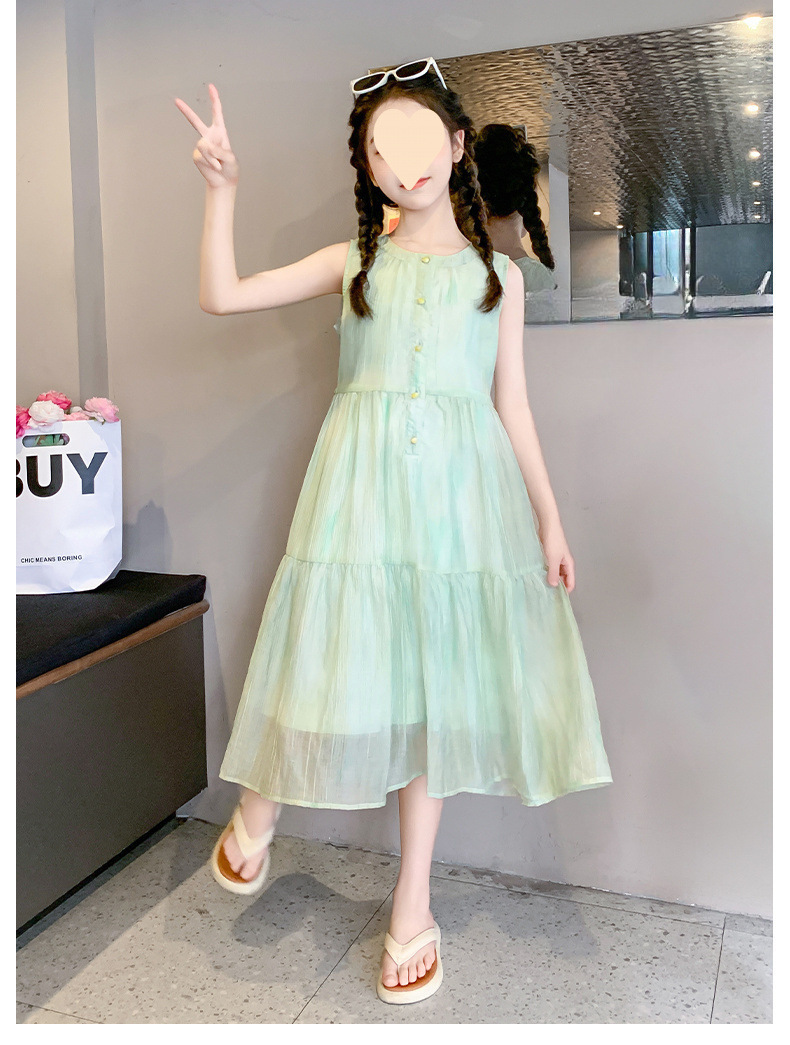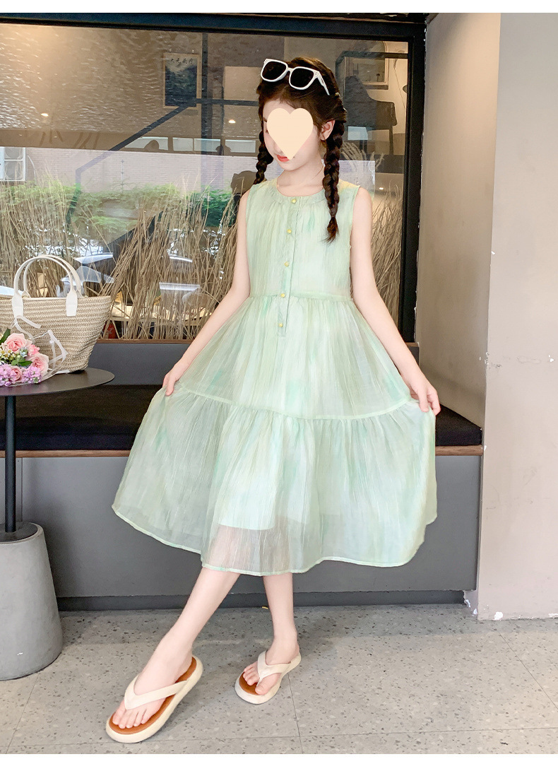 여아 스커트 2025 신상 조끼 민소매 드레스 쉬폰 그린 중대형 아동스토어 가기