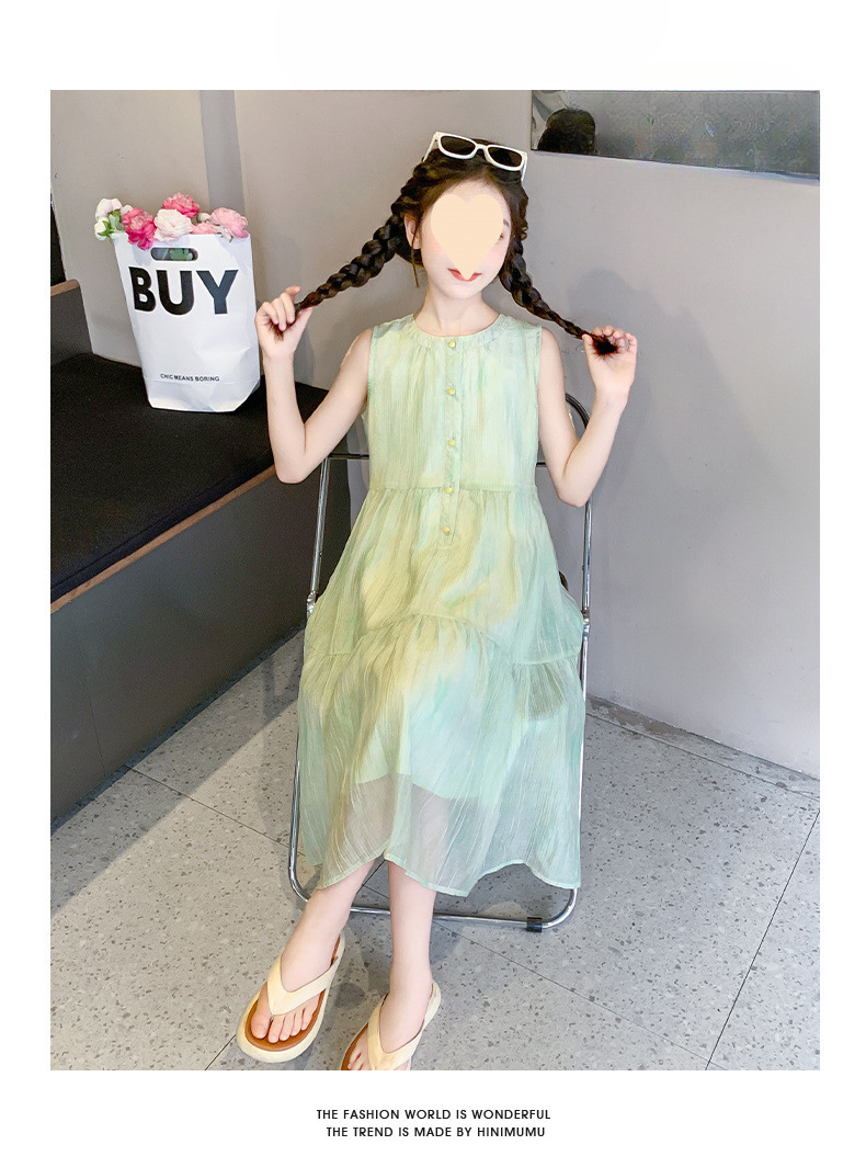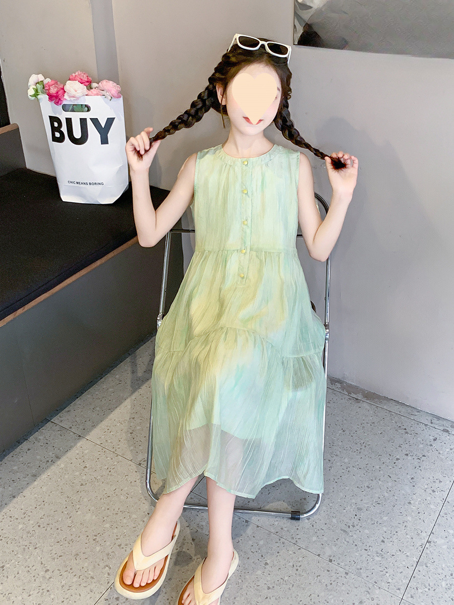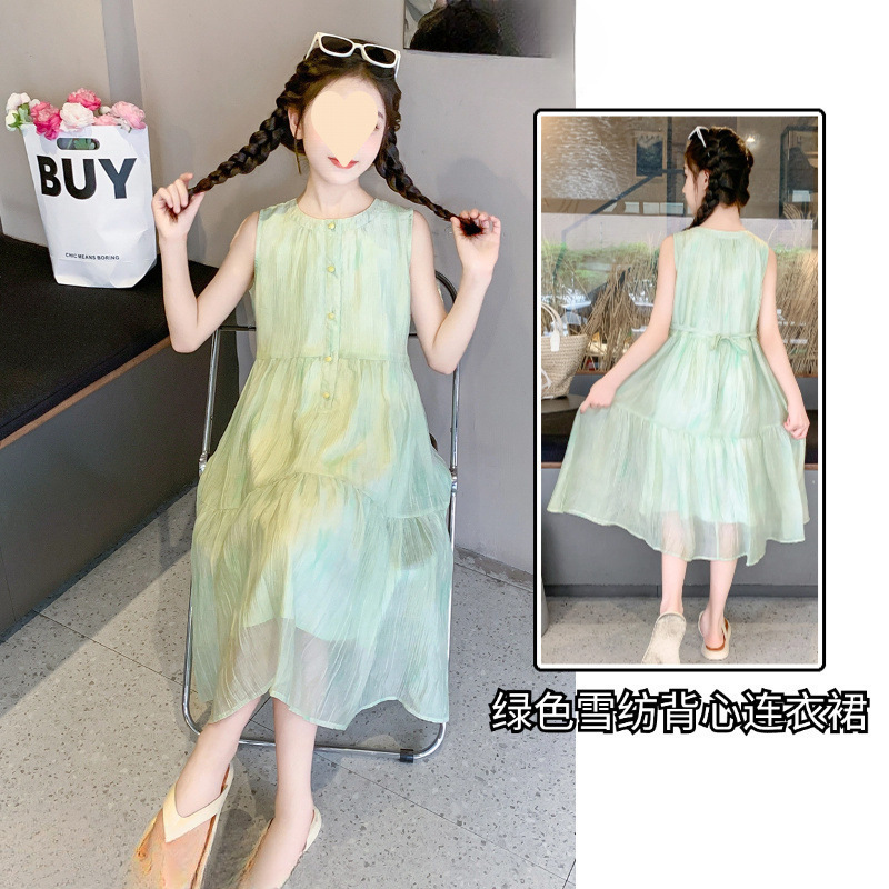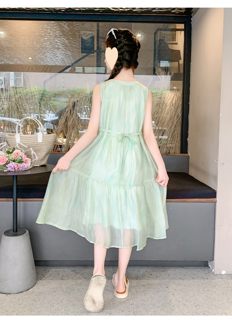 여아 스커트 2025 신상 조끼 민소매 드레스 쉬폰 그린 중대형 아동스토어 가기