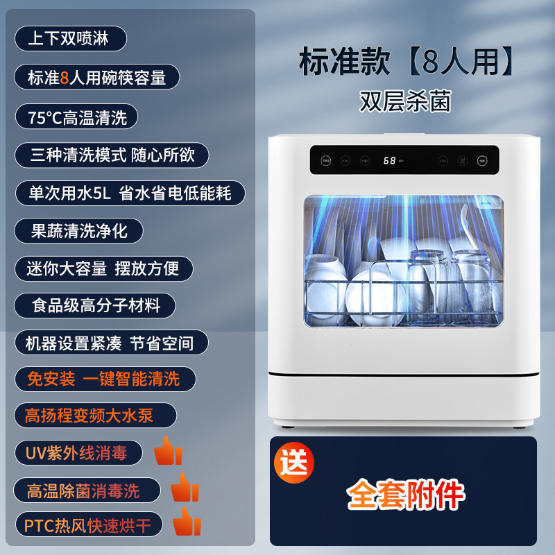 2024 새로운 식기 세척기 가정용 데스크탑 소형 완전 자동 설치가 필요없는 듀얼 모드 물 입구는 독립적으로 건조 가능 110V스토어 가기