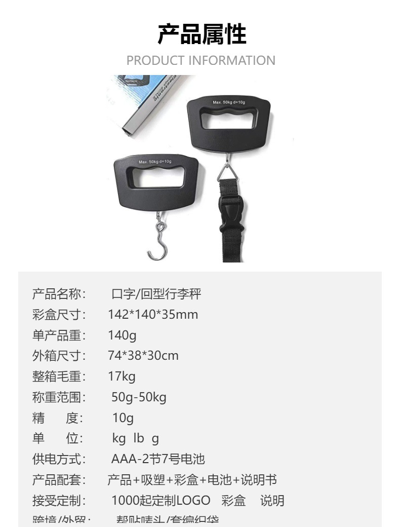 T型旅行行李秤钓鱼秤弹簧秤便携式手提电子秤50kg跨境行李秤厨房秤珠宝秤体脂秤工业秤手提吊钩秤亚马逊跨境专用厂家批发