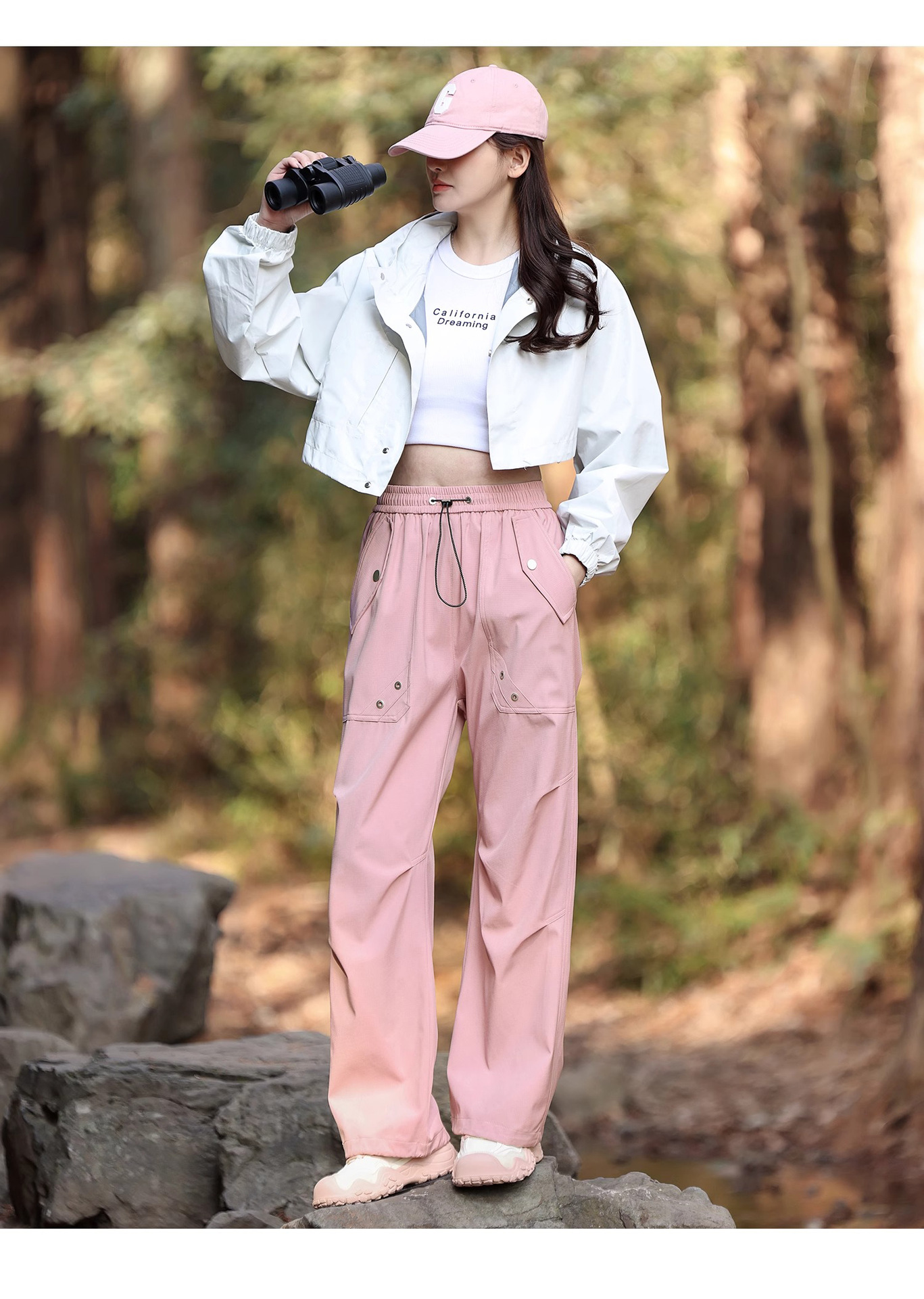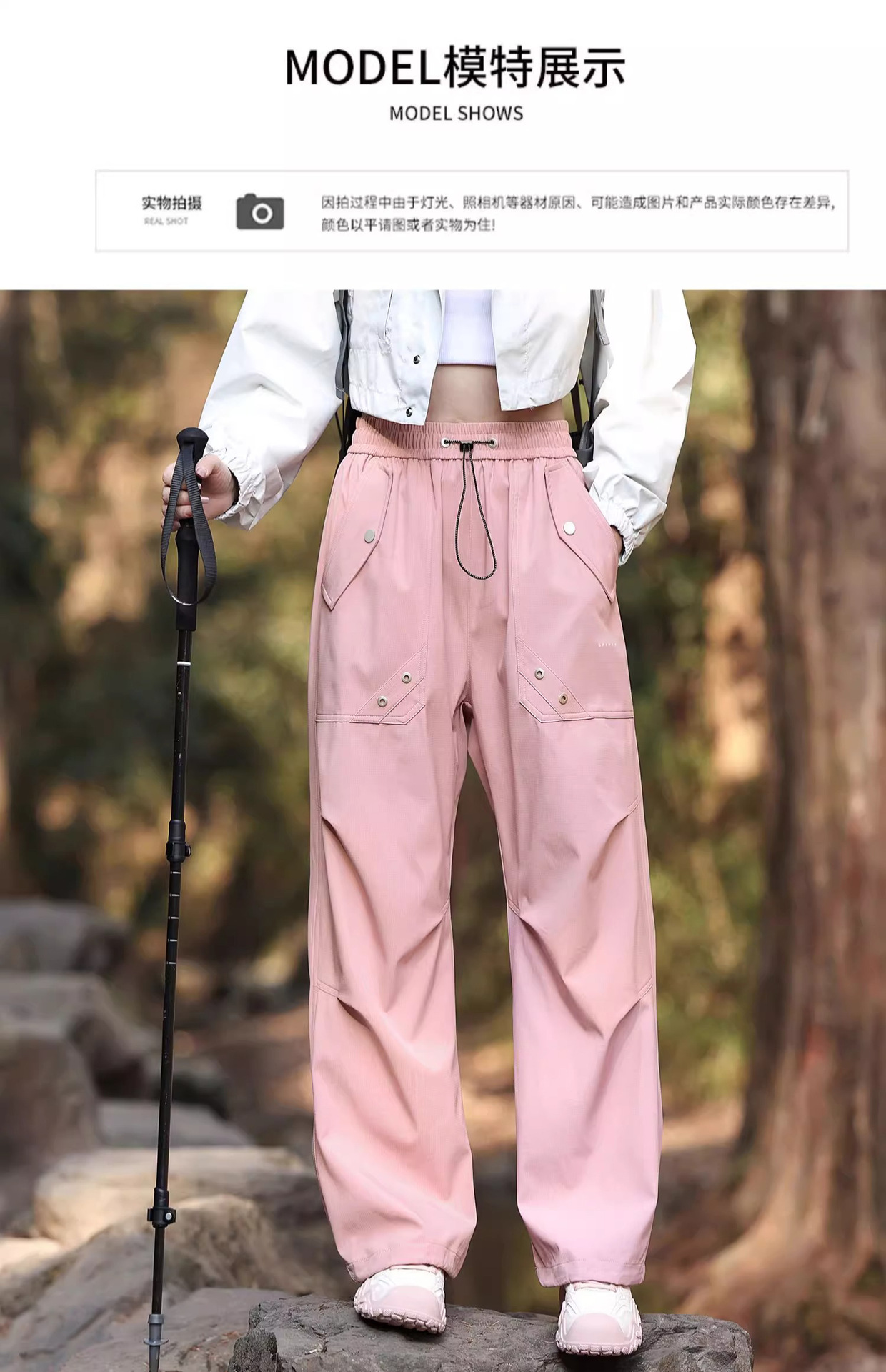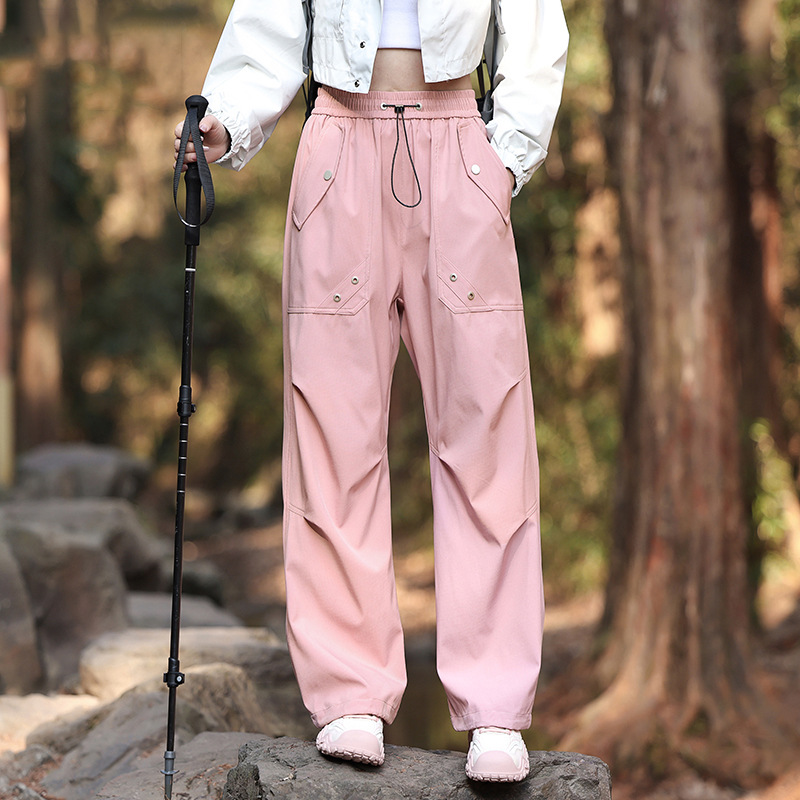 여름 새로운 느슨한 스트레이트 작은 스포츠 및 레저 긴 바지 여성을위한 나무 박쥐 야외 방수 작업복스토어 가기