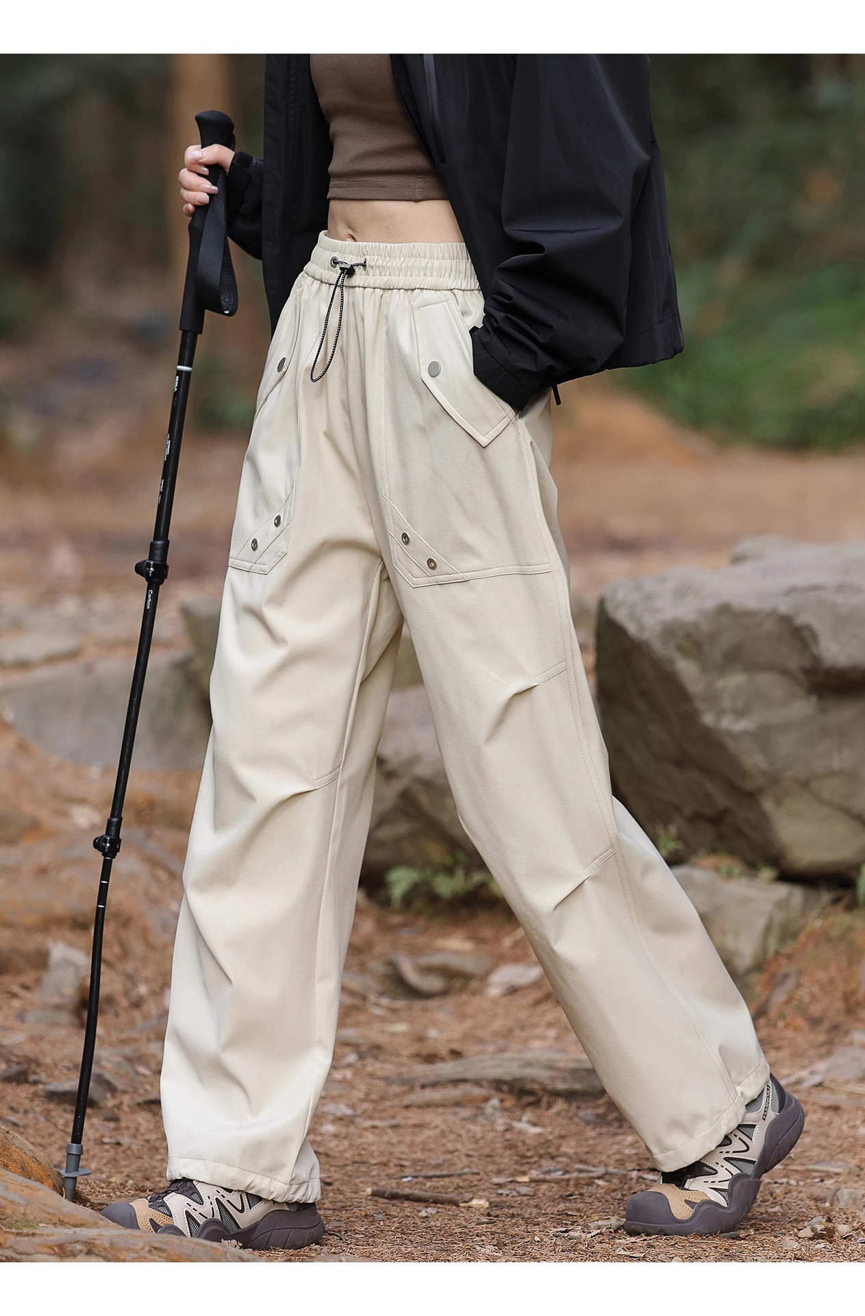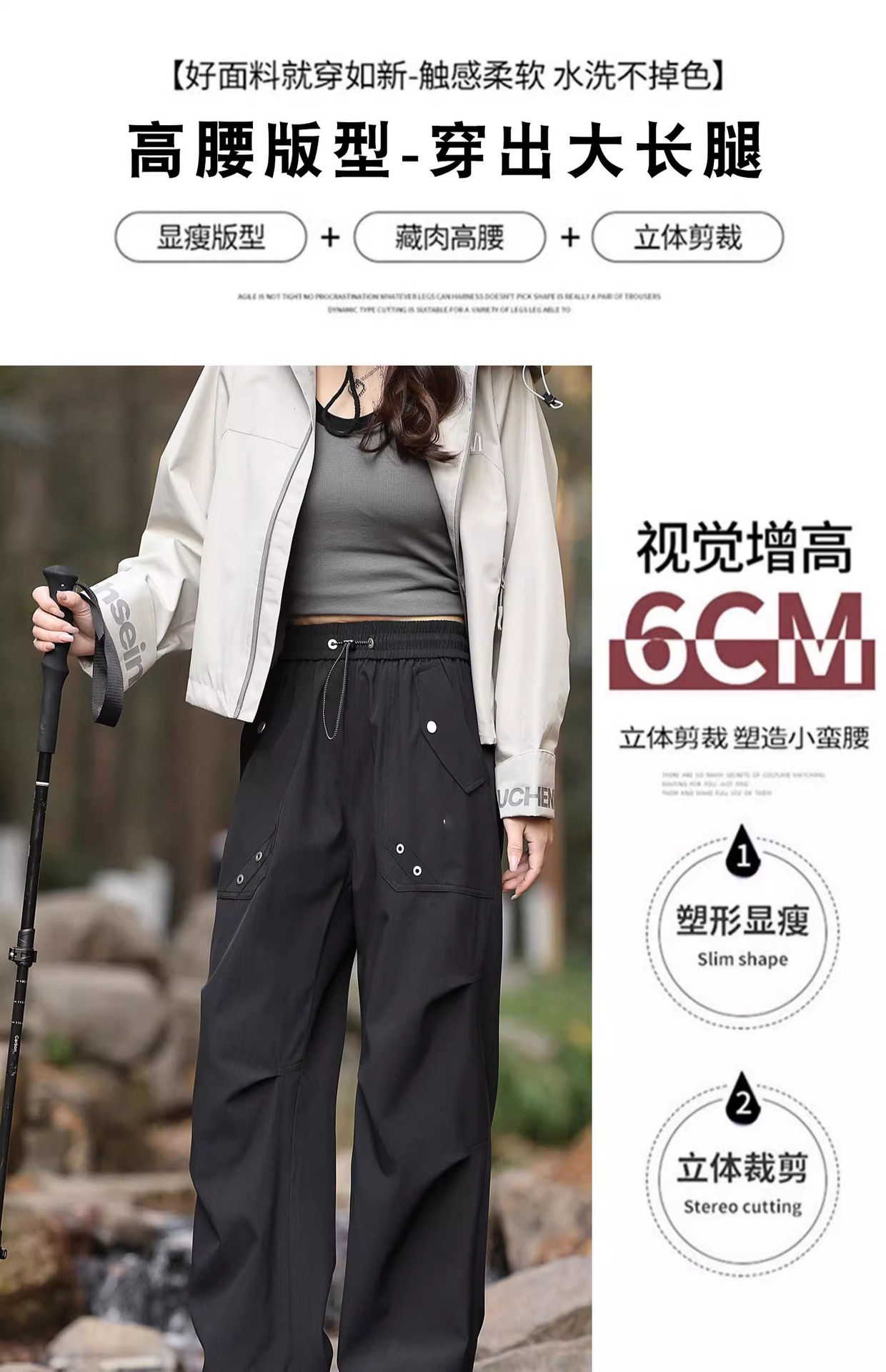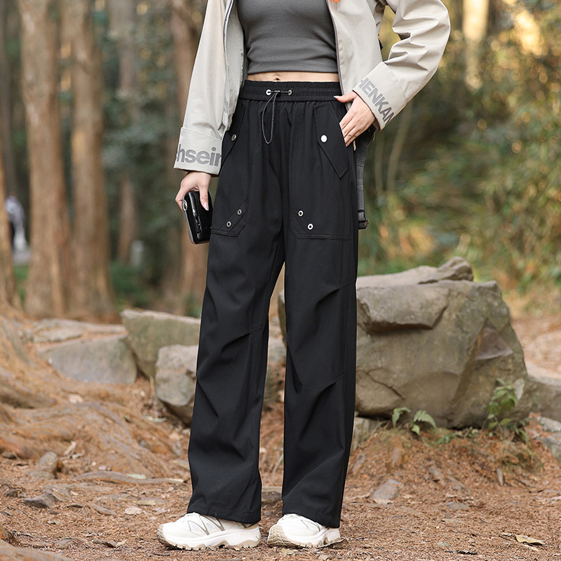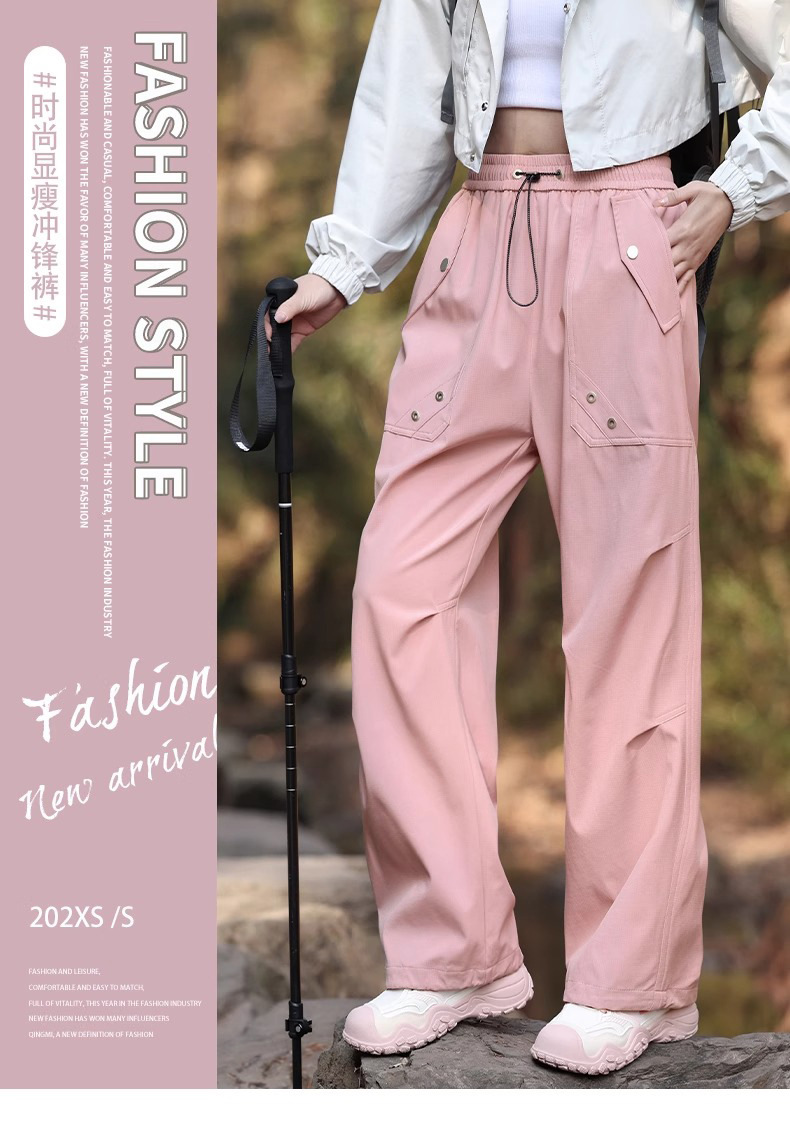 여름 새로운 느슨한 스트레이트 작은 스포츠 및 레저 긴 바지 여성을위한 나무 박쥐 야외 방수 작업복스토어 가기