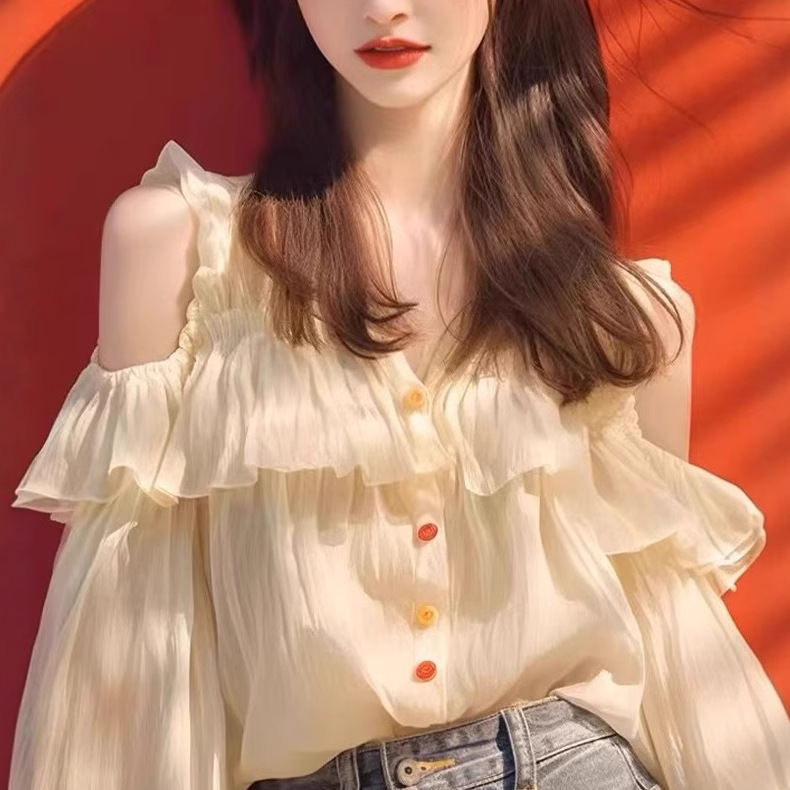 러플 쉬폰 셔츠 여성용 가을 느슨한 쉬폰 셔츠 얇은 하이 엔드 어깨 디자인 긴팔 탑