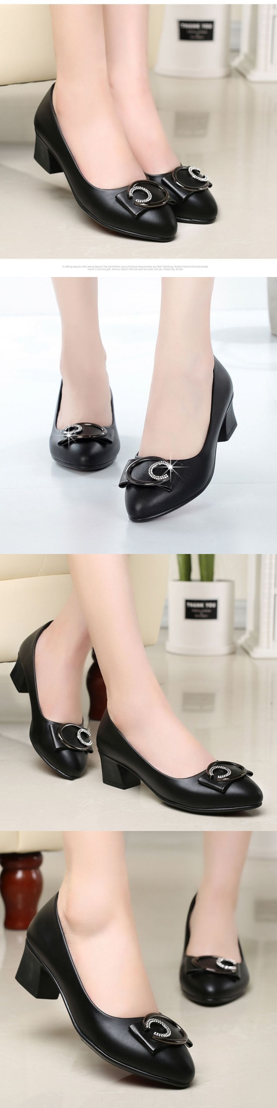 여성용 부드러운 가죽 부드러운 밑창 싱글 슈즈, 미드 힐, 미끄럼 방지 얕은 입 작은 가죽 신발, 2024 새로운 봄, 가을 패션 엄마 신발스토어 가기