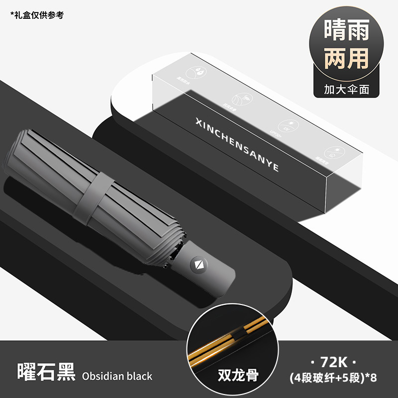 자동 72 뼈 우산 3 배 검은 고무 선 스크린 우산 도매 맞춤형 비즈니스 우산 맑은 비 이중 목적 태양 우산