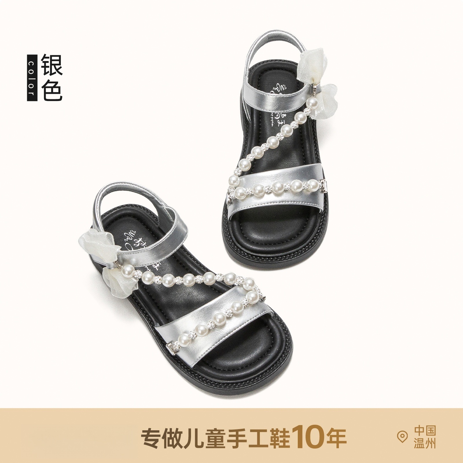 매우 통기성이 좋습니다 ~ 어린이 샌들 소녀 흰색 공주 신발 2025 새로운 여름 스타일 큰 어린이 신발 서양식 로마 신발스토어 가기