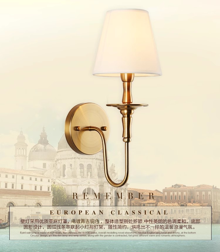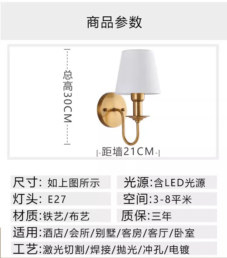 벽등 침대 옆 거실 침실 배경벽 계단 신중국풍 유럽풍 미국식 구리색 앤티크 실내 이중 조명기구