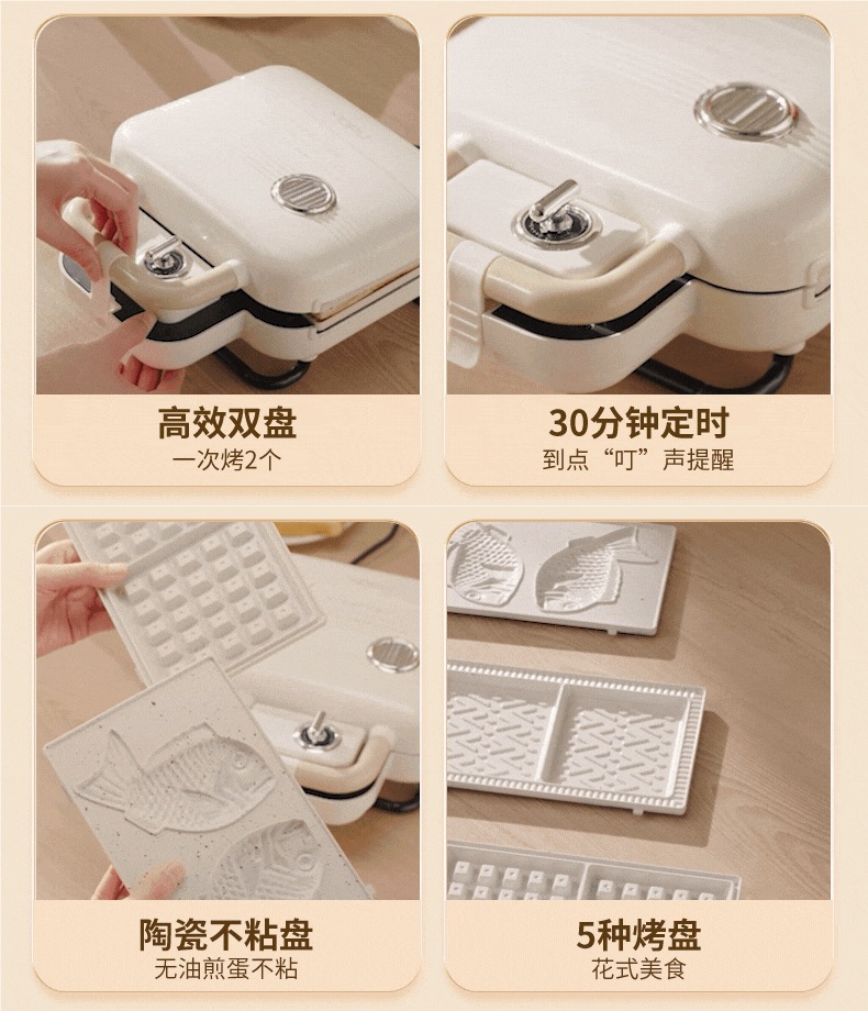 • 화이트-[샌드위치 플레이트 + 와플 플레이트 + 붕어빵] 업그레이드된 세라믹 논스틱
