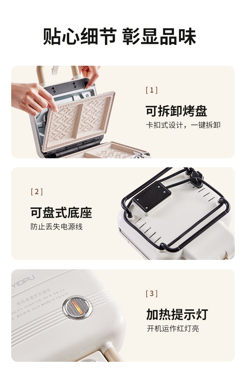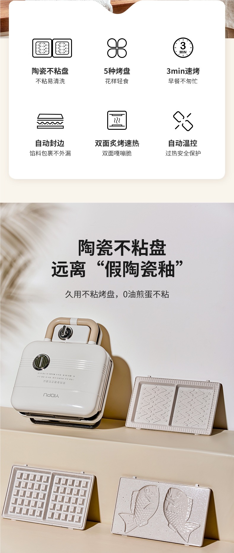 Yidepu 더블 디스크 샌드위치 아침 식사 기계 가정용 타이머 다기능 와플 가벼운 음식 기계 소형 빵 기계