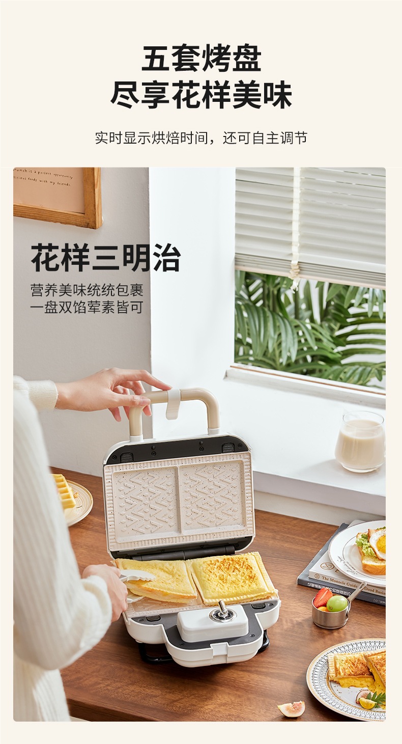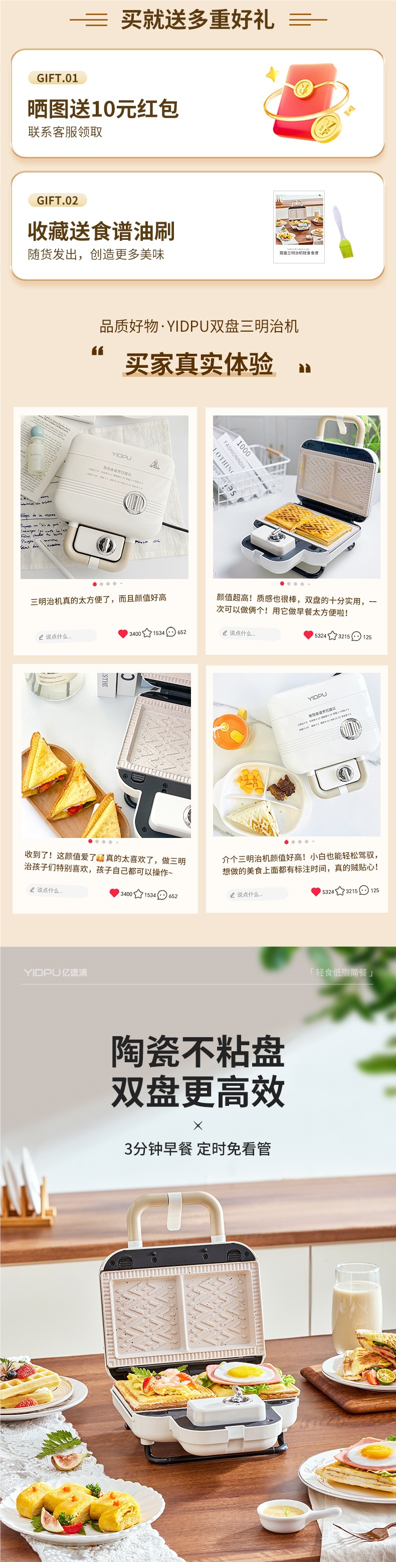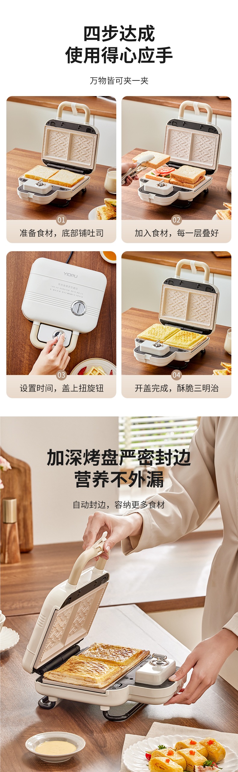 Yidepu 더블 디스크 샌드위치 아침 식사 기계 가정용 타이머 다기능 와플 가벼운 음식 기계 소형 빵 기계스토어 가기