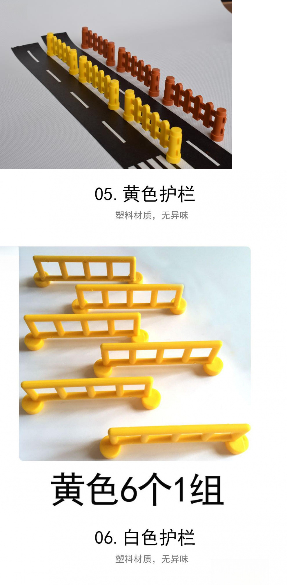 • 가드레일 노란색 6개 1세트, 높이 3.4cm, 길이 9cm