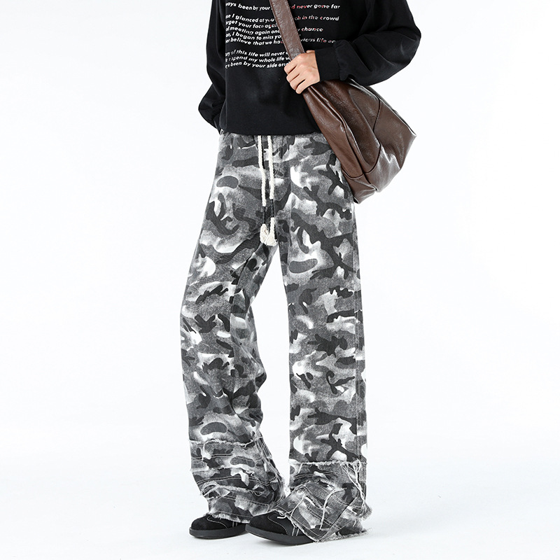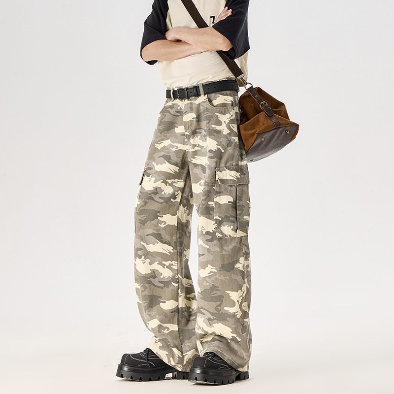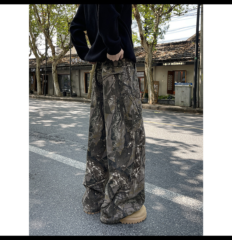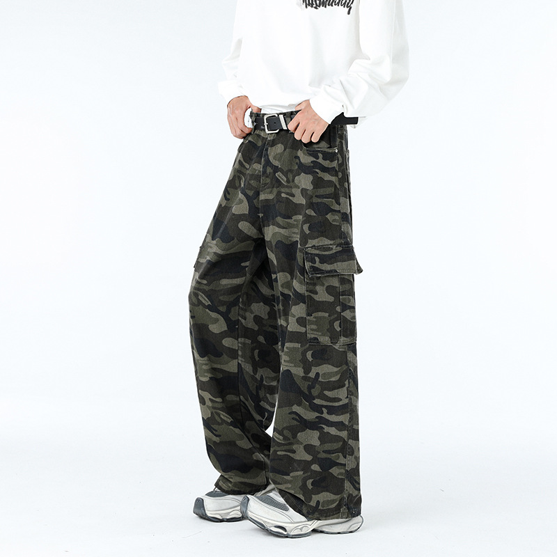군녹색 카모플라주 청바지 남성용 봄 가을 벌목 작업복 바지 미국식 하이 스트리트 스트레이트 캐주얼 긴바지스토어 가기