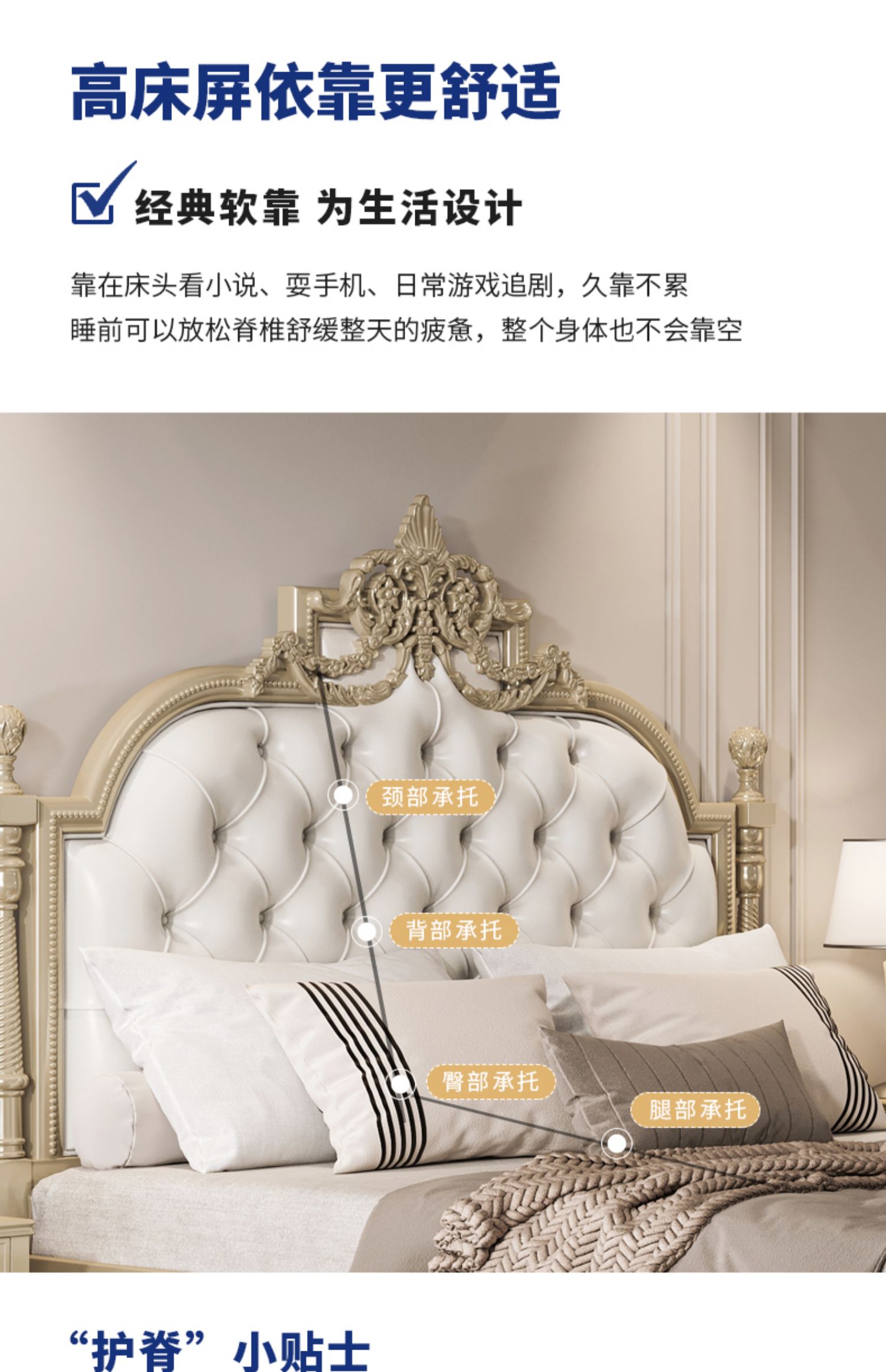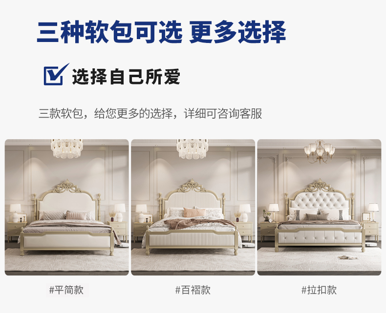 도매 유럽 스타일 조각 된 전체 단단한 나무 침대 1.8m 마스터 침실 더블 침대 미국의 가벼운 럭셔리 공주 침대 프랑스 스타일 Palace스토어 가기