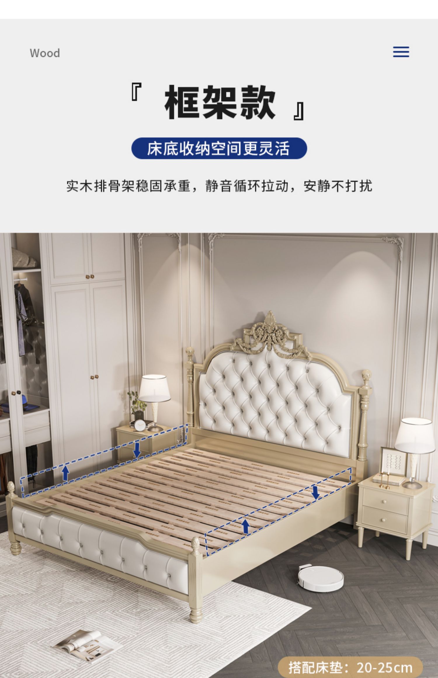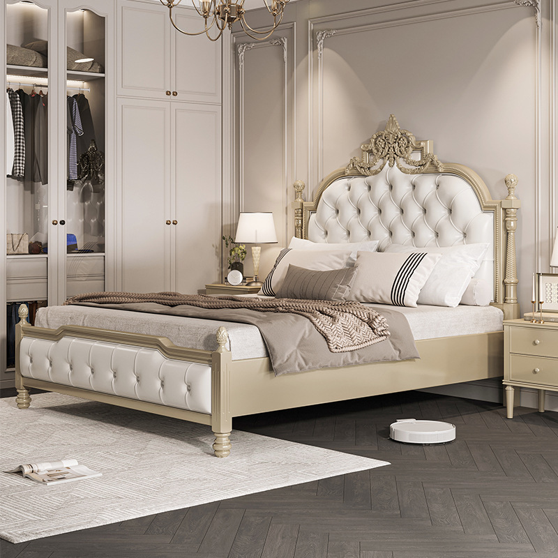도매 유럽 스타일 조각 된 전체 단단한 나무 침대 1.8m 마스터 침실 더블 침대 미국의 가벼운 럭셔리 공주 침대 프랑스 스타일 Palace