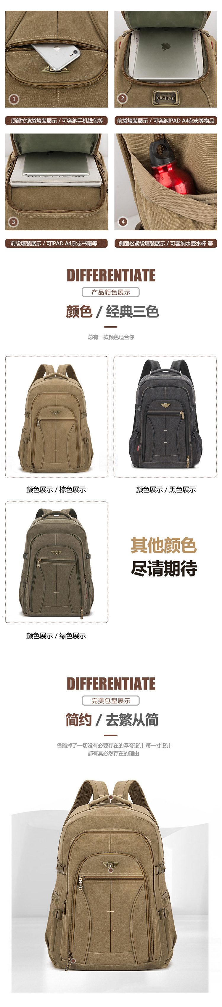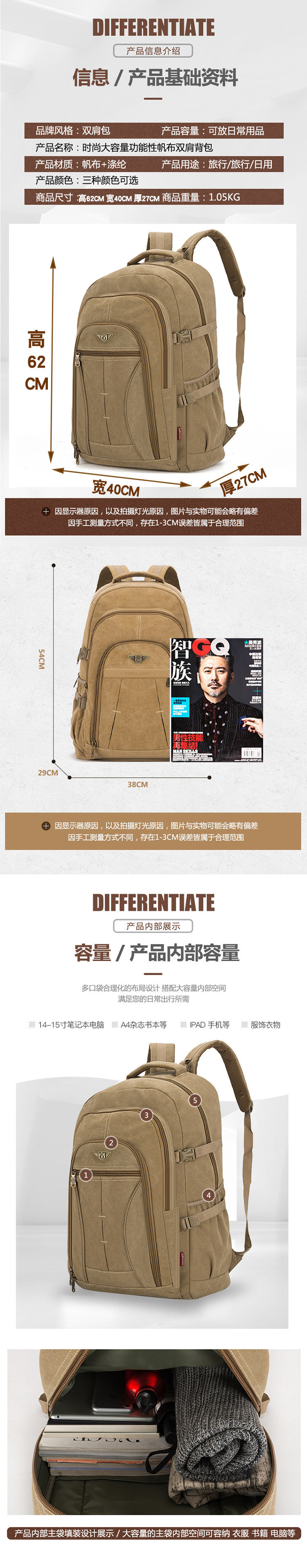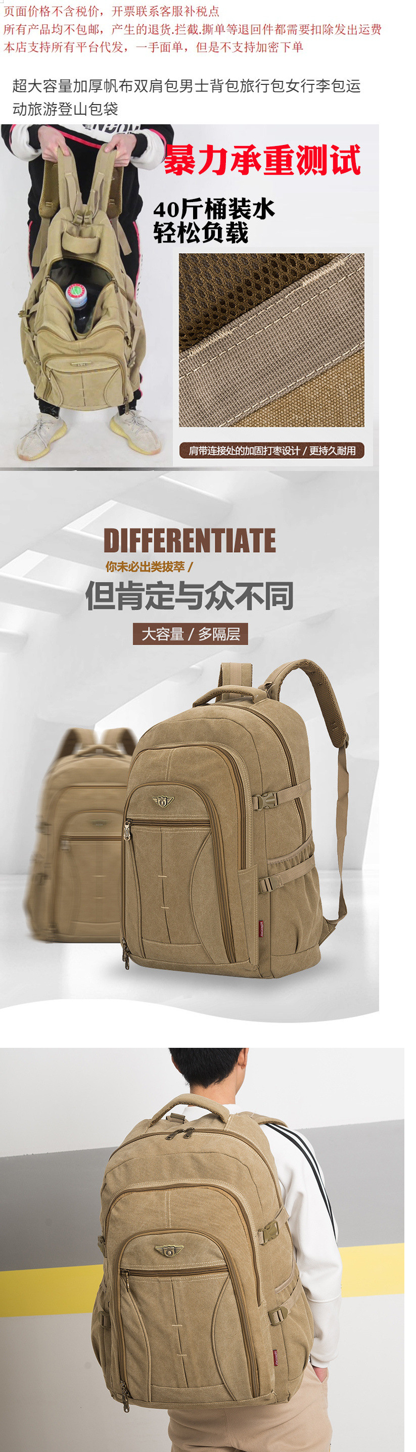 초대형 용량 두꺼운 캔버스 배낭 남자 배낭 여행 가방 여성 수하물 가방 스포츠 여행 등산 가방