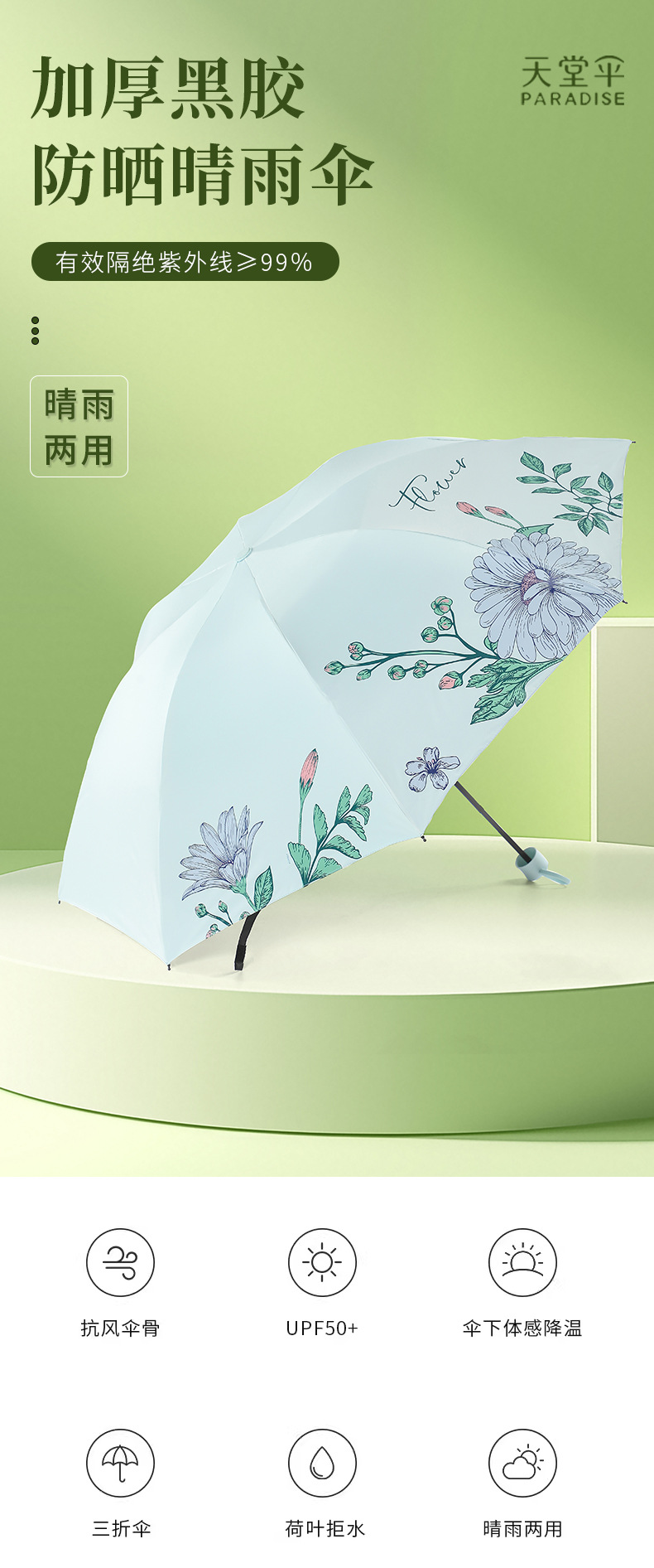 Paradise Umbrella 비닐 자외선 차단제 자외선 차단제 비 또는 빛 우산 태양 우산 학생 접이식 파라솔 로고 인쇄 가능