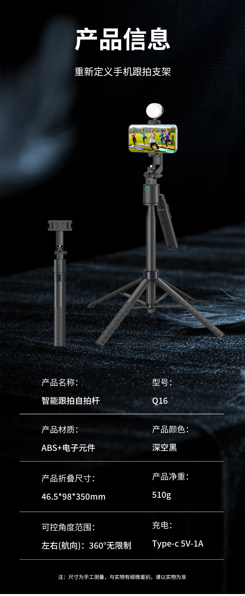 • Q16 통합 짐벌 + 뷰티 필 라이트(듀얼 조명)(다기능 리모콘 포함)