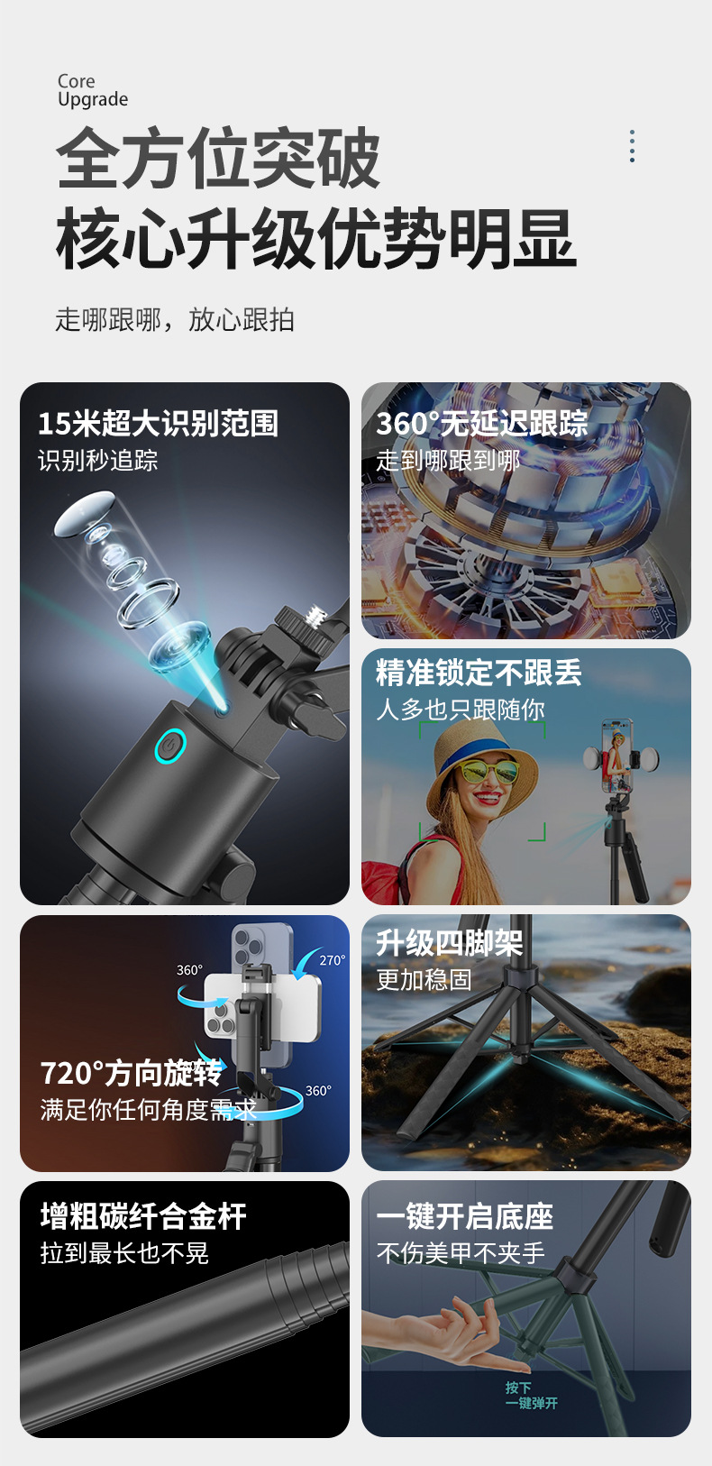 국경 간 새로운 지능형 AI 짐벌 셀카 스틱 자동 후속 유물 통합 핸드 헬드 짐벌 안티 쉐이크 브래킷