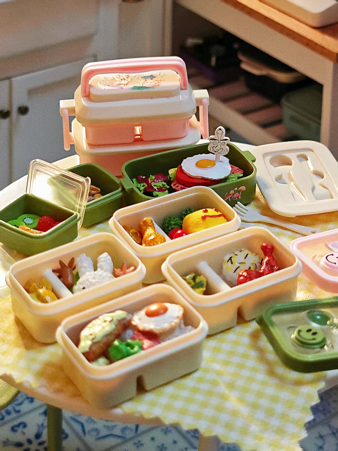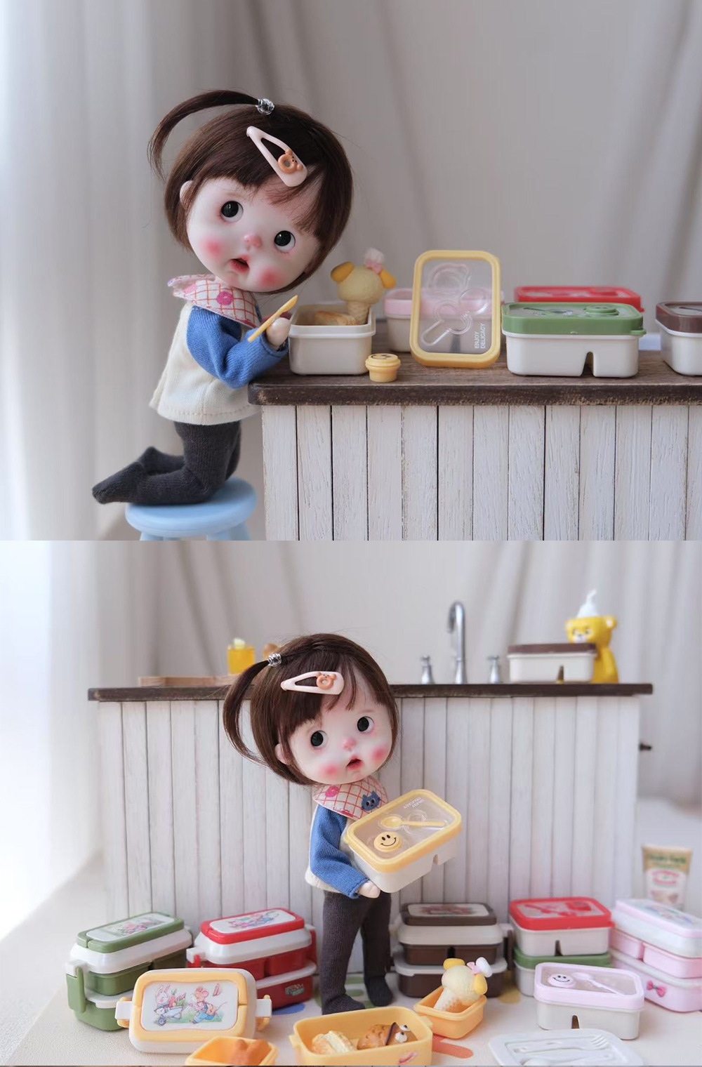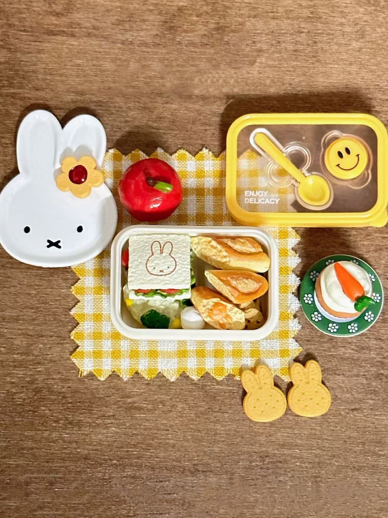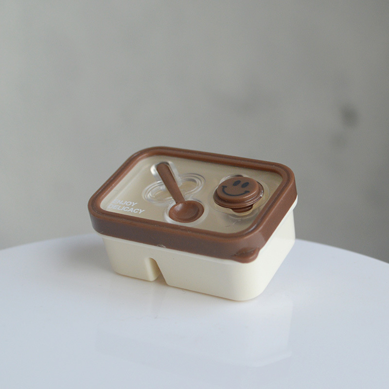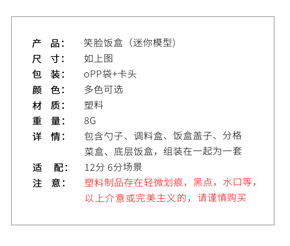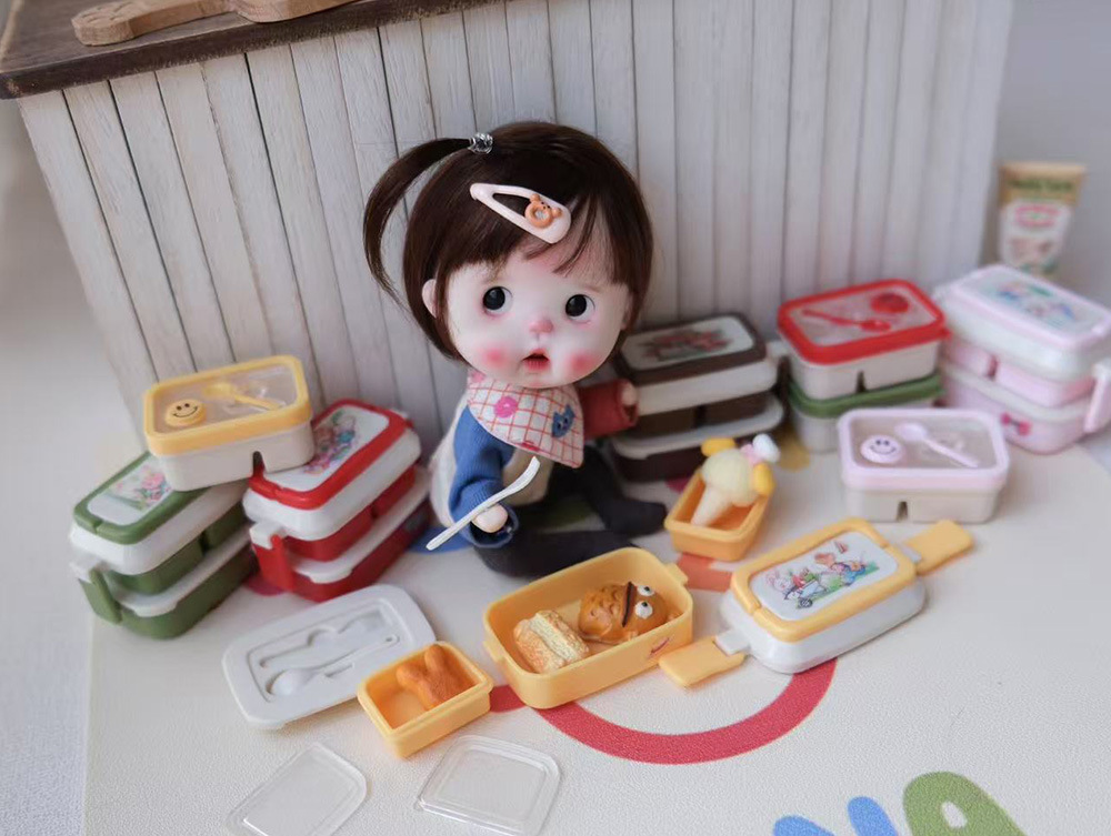 6 점 BJD 인형 집 미니어처 미니 귀여운 도시락 도시락 모델 시뮬레이션 더블 레이어 음식 놀이 웃는 얼굴 도시락 상자스토어 가기