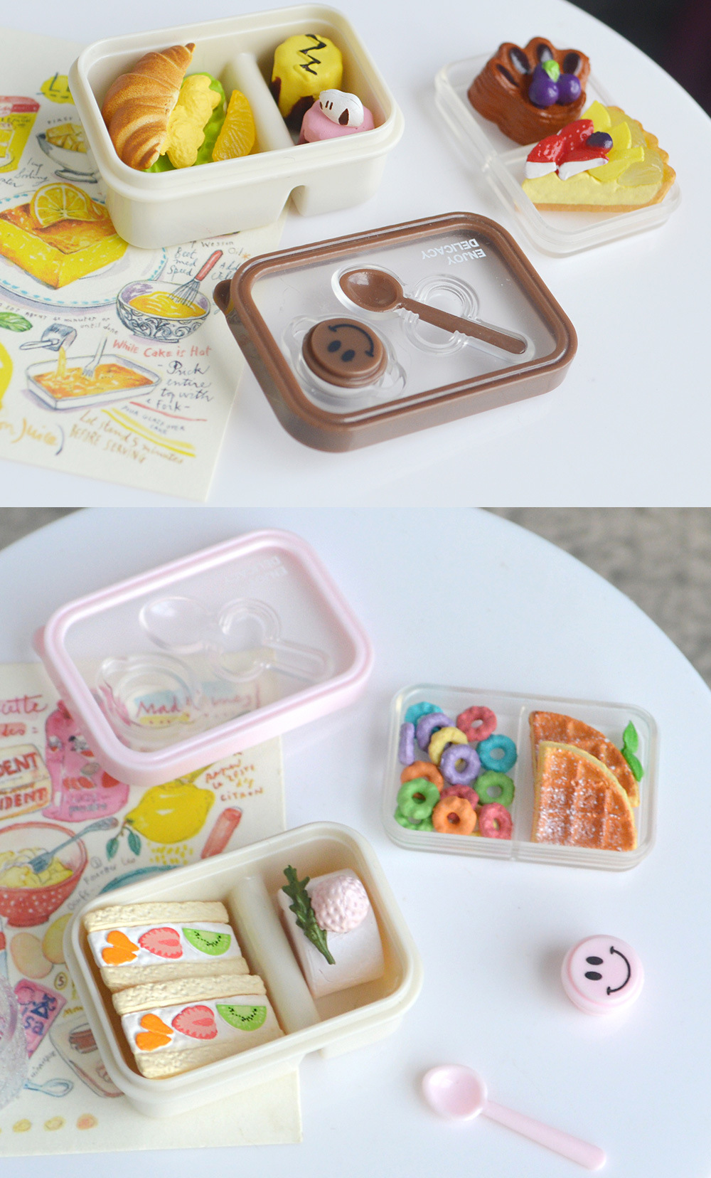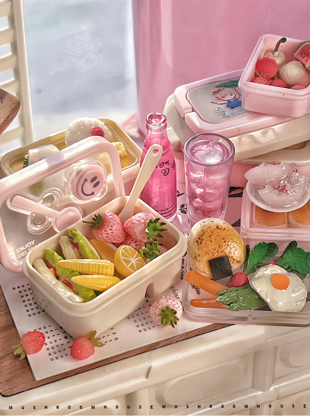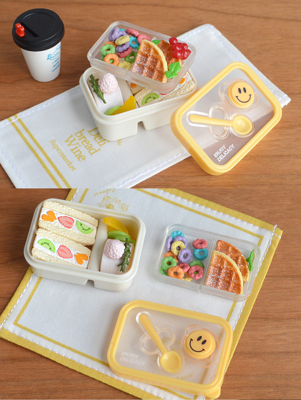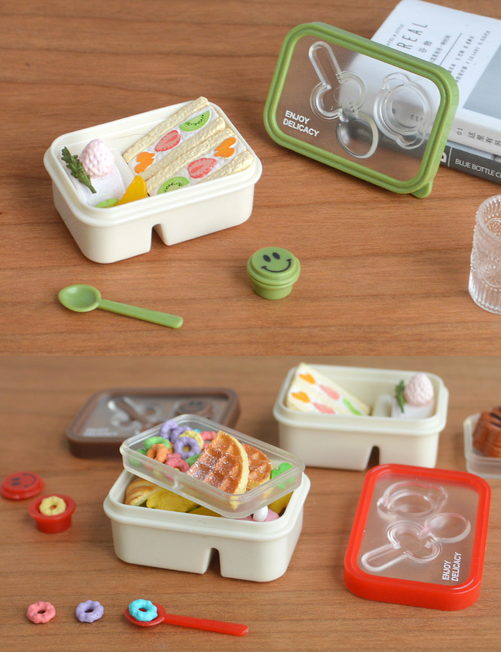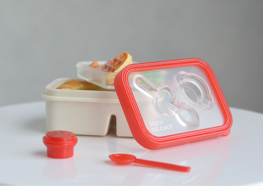 6 점 BJD 인형 집 미니어처 미니 귀여운 도시락 도시락 모델 시뮬레이션 더블 레이어 음식 놀이 웃는 얼굴 도시락 상자스토어 가기