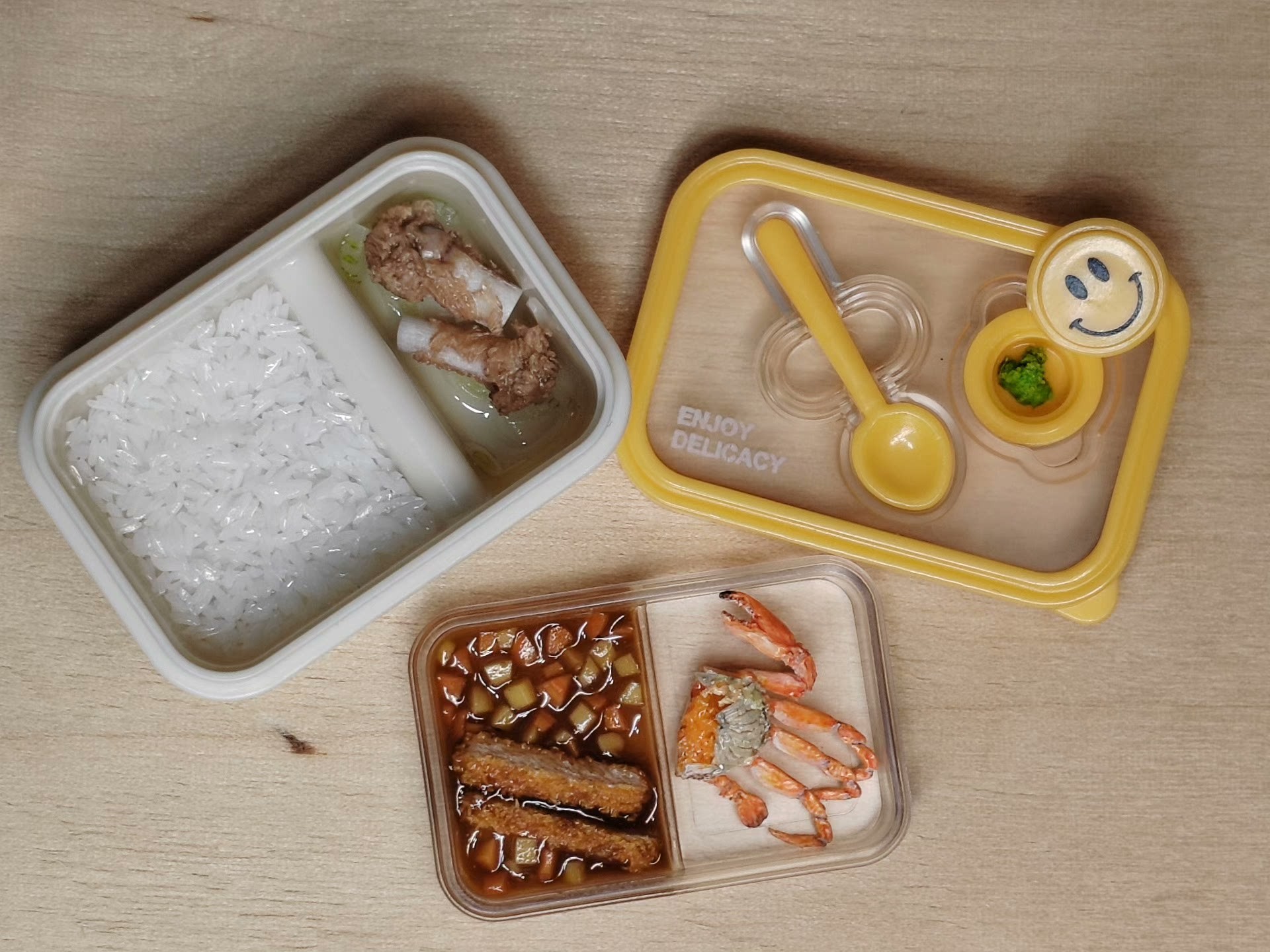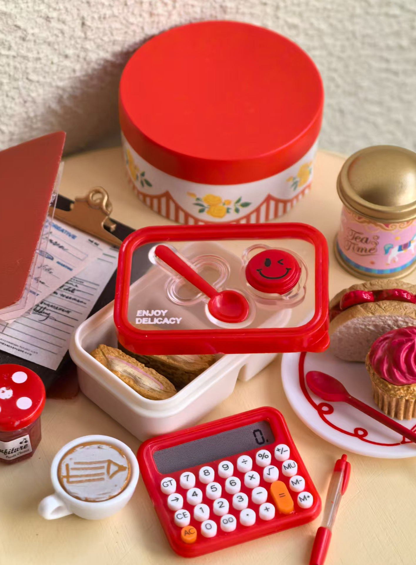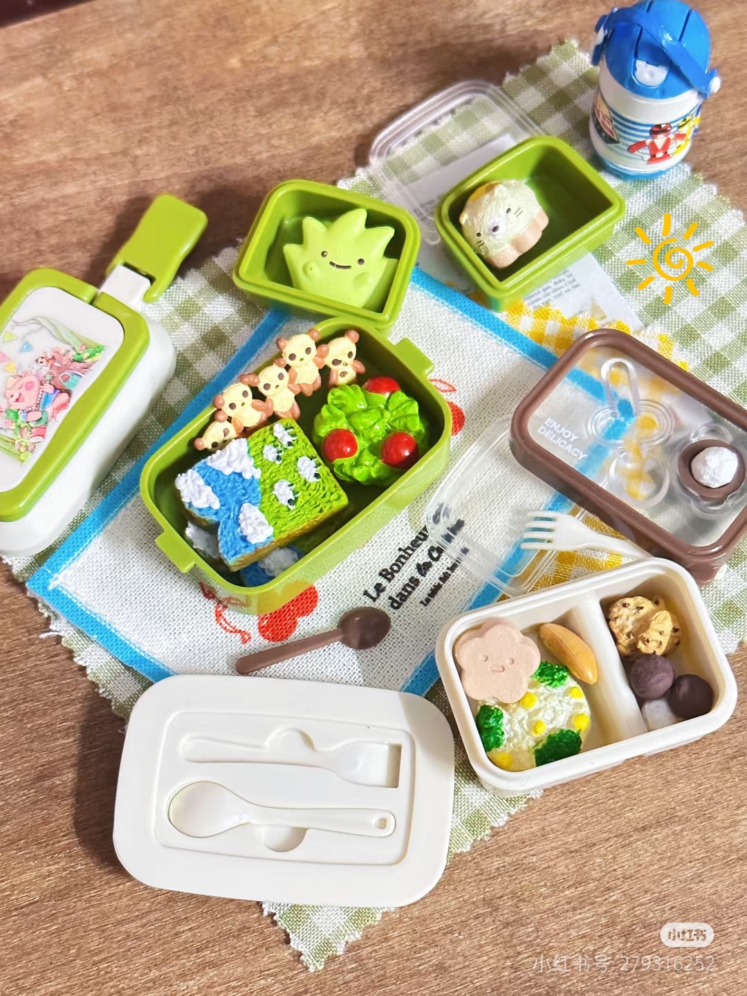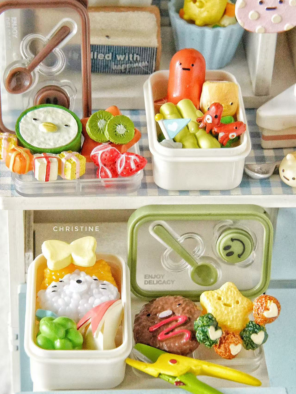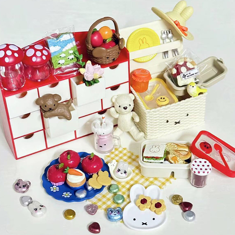 6 점 BJD 인형 집 미니어처 미니 귀여운 도시락 도시락 모델 시뮬레이션 더블 레이어 음식 놀이 웃는 얼굴 도시락 상자스토어 가기