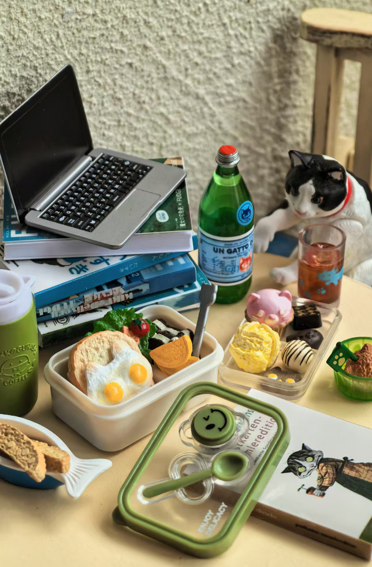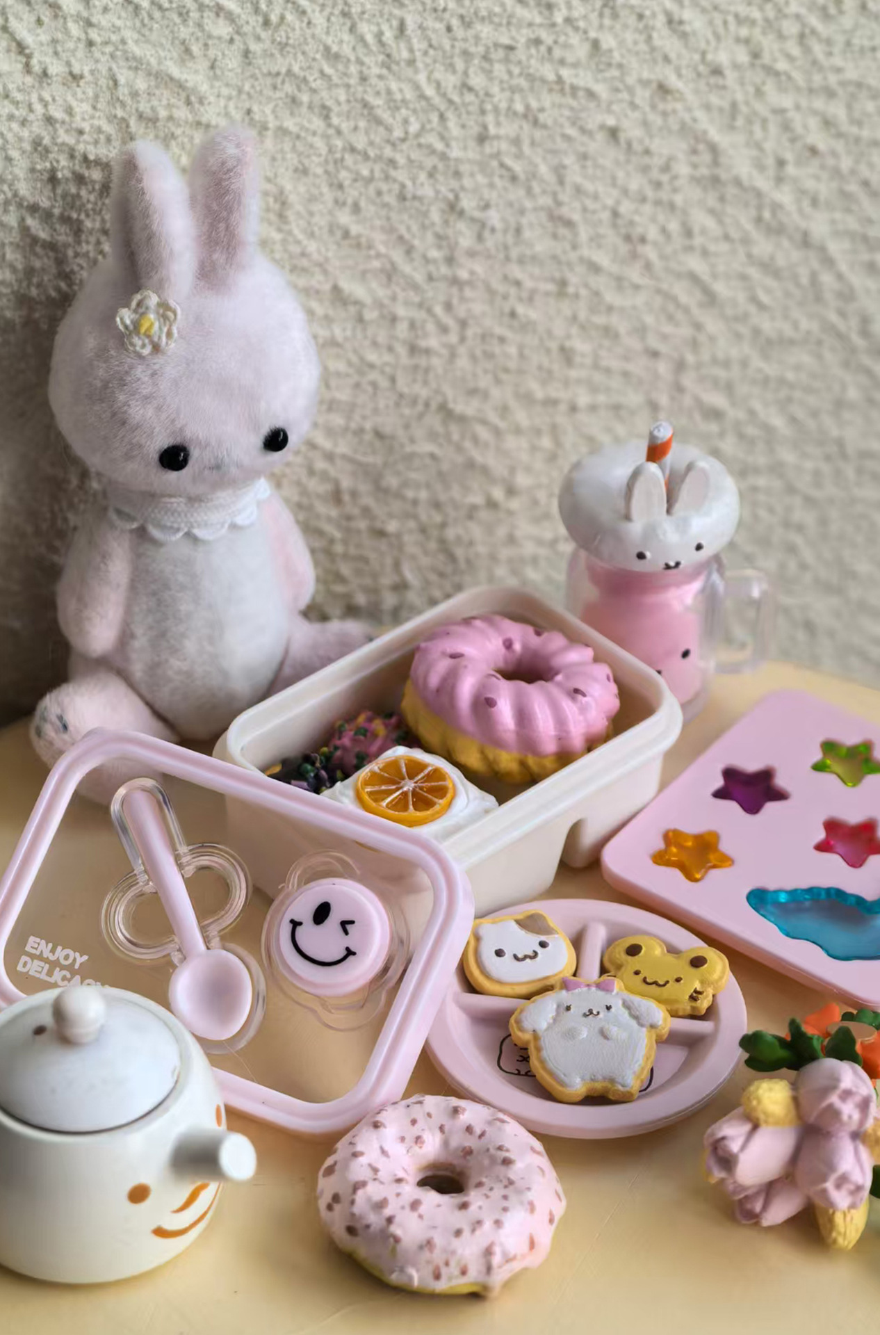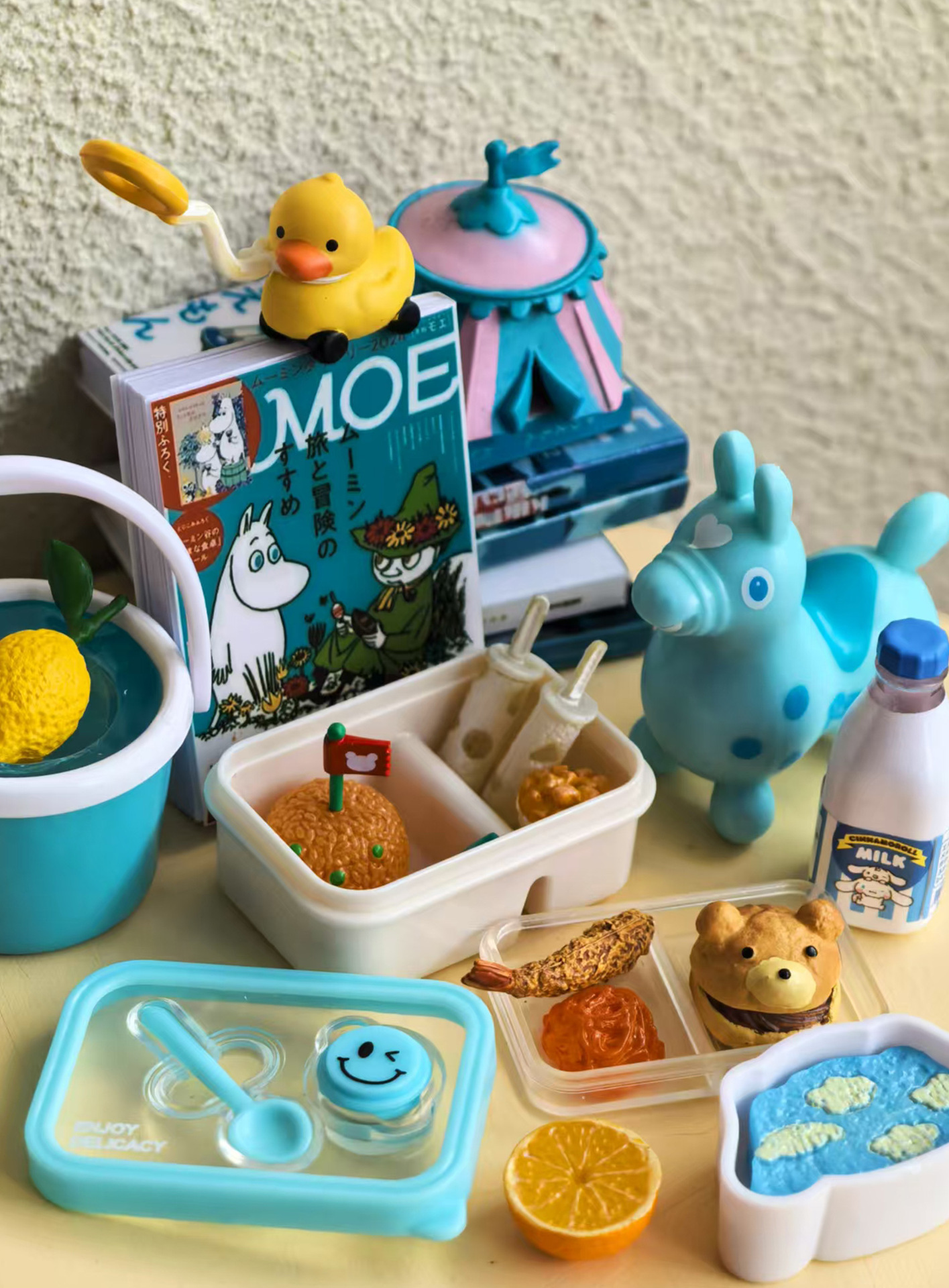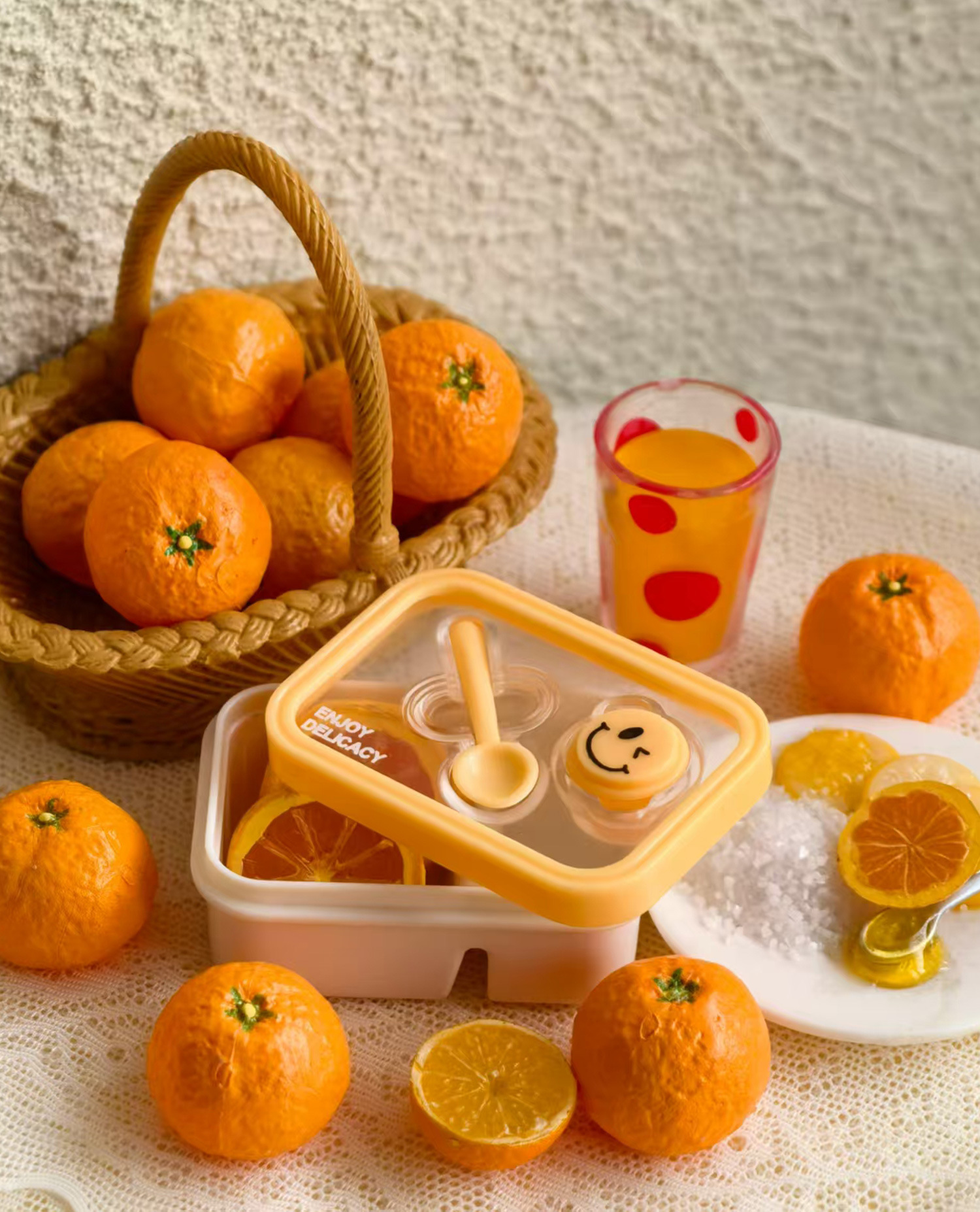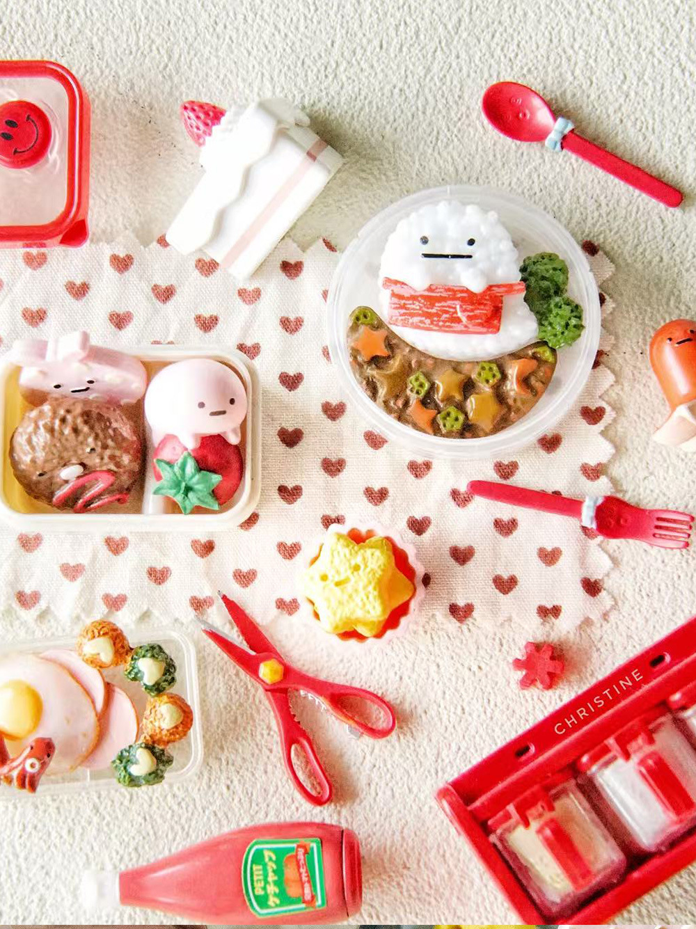 6 점 BJD 인형 집 미니어처 미니 귀여운 도시락 도시락 모델 시뮬레이션 더블 레이어 음식 놀이 웃는 얼굴 도시락 상자스토어 가기