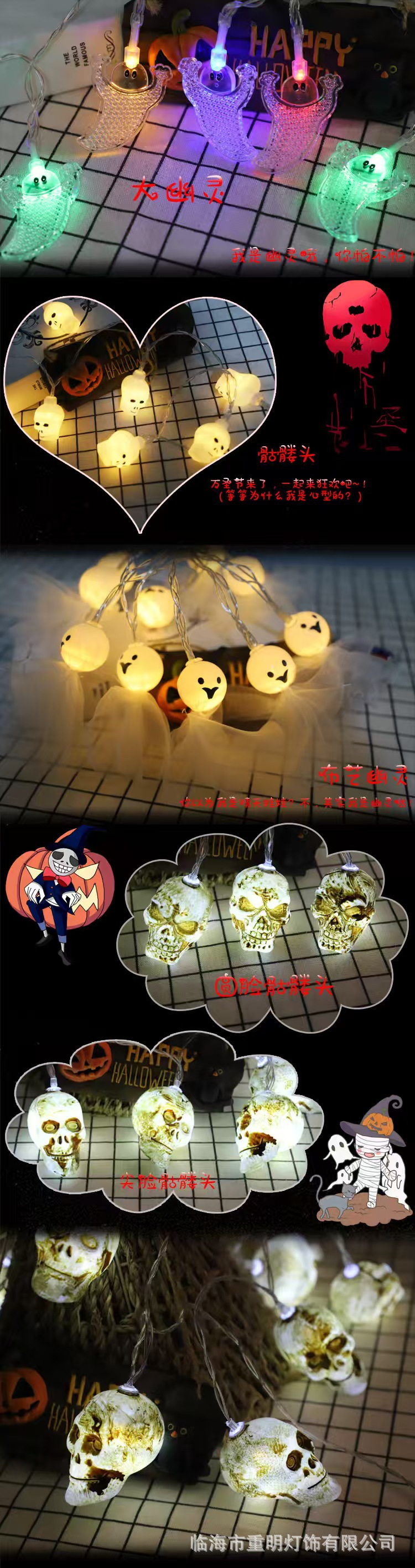 크로스 국경 LED 할로윈 실내 조명 장식 유령 축제 부활절 거미 유령 두개골 호박 분위기 빛 문자열