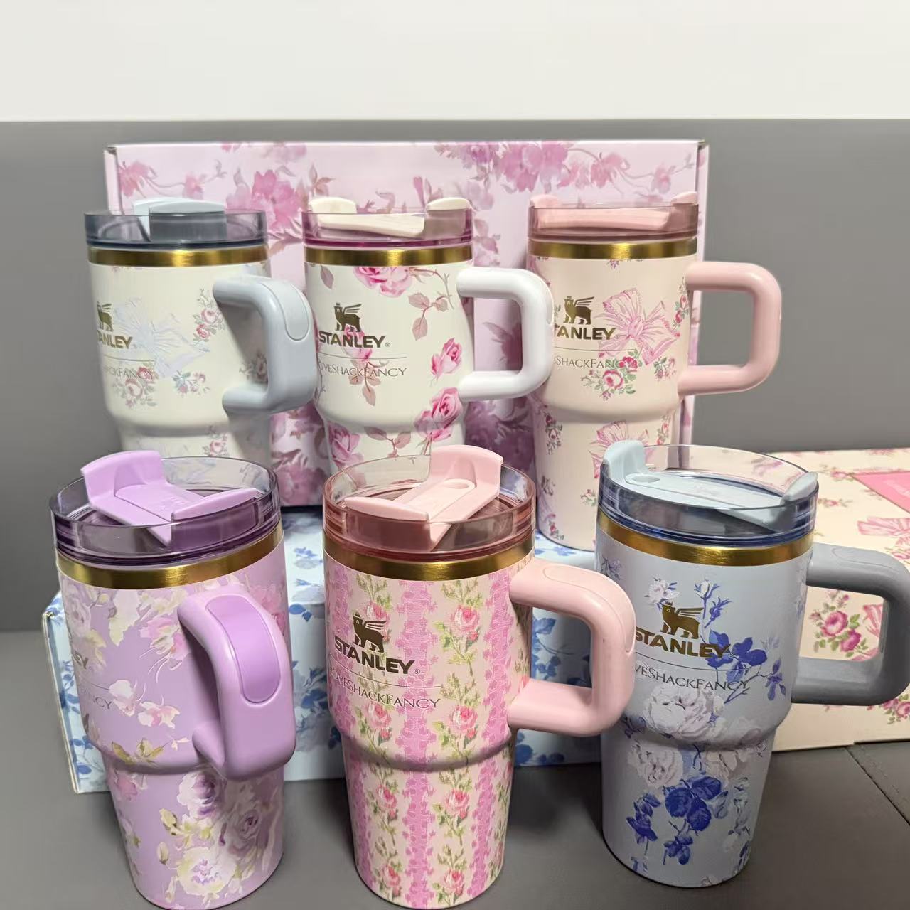 스팟 크로스보더 미니 스탠리 스탠리 보온병 컵 20oz 꽃새로운 사랑의 정원 공동 브랜드 모델