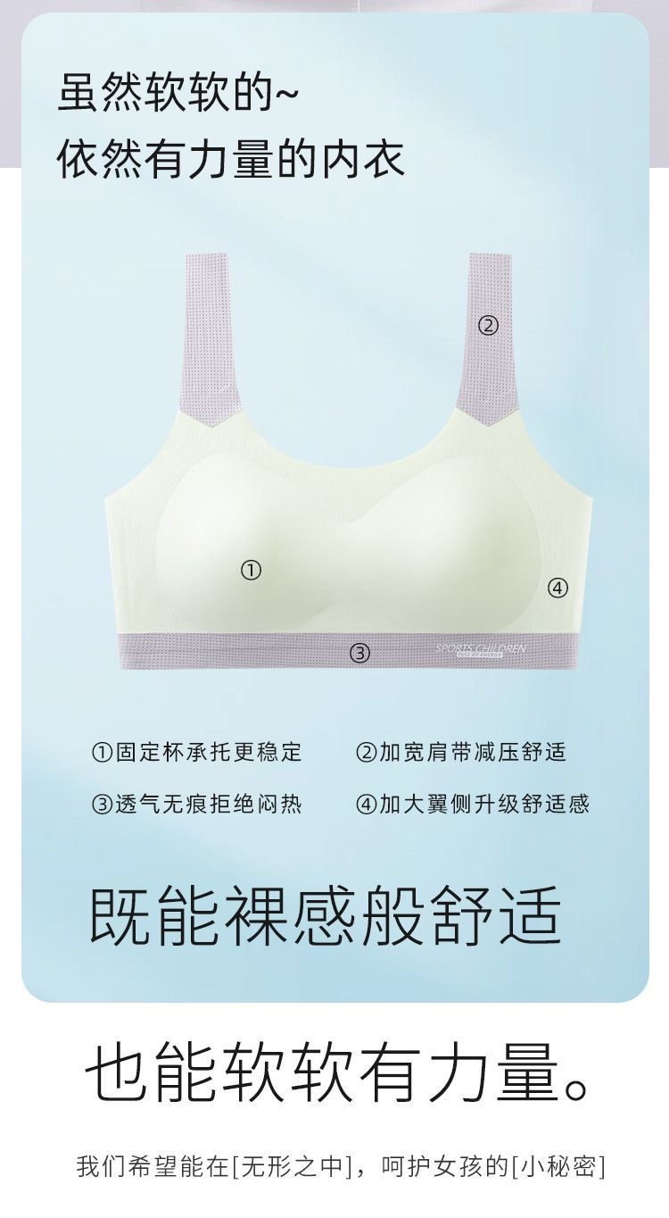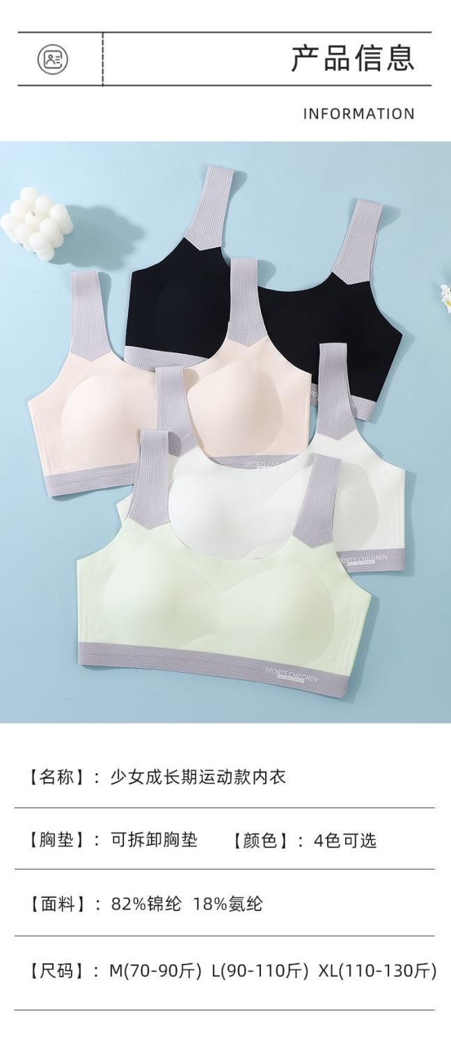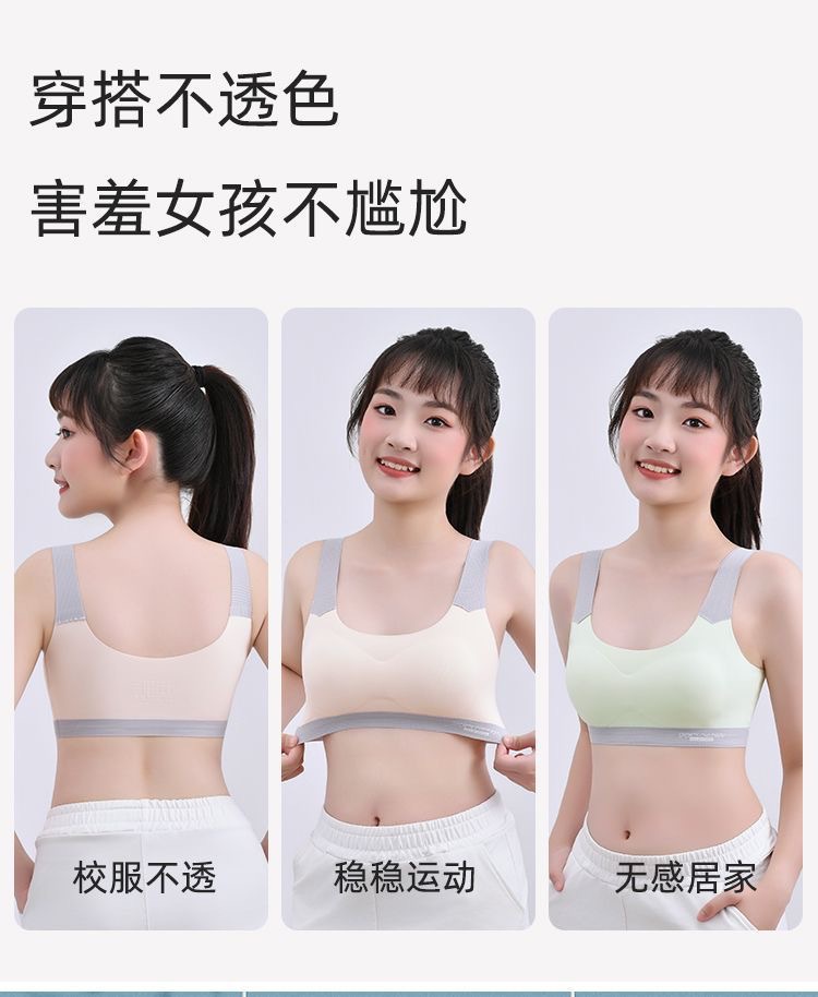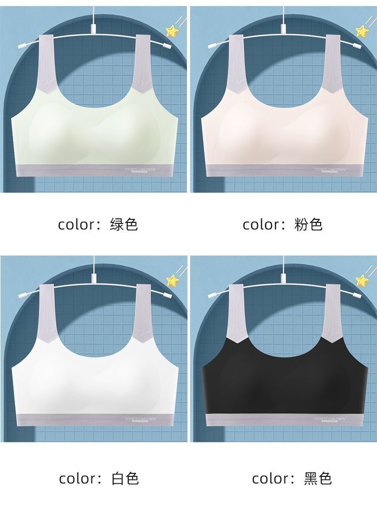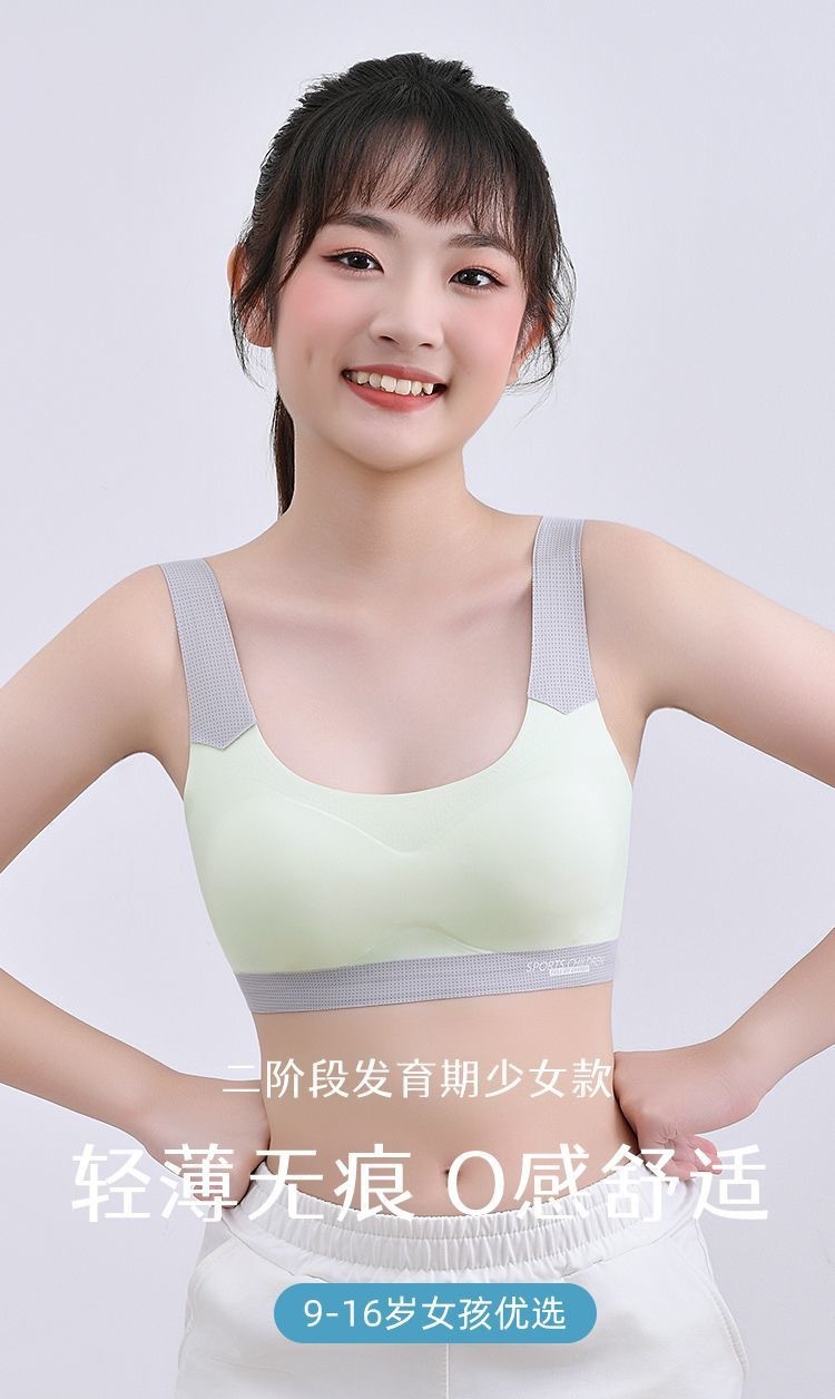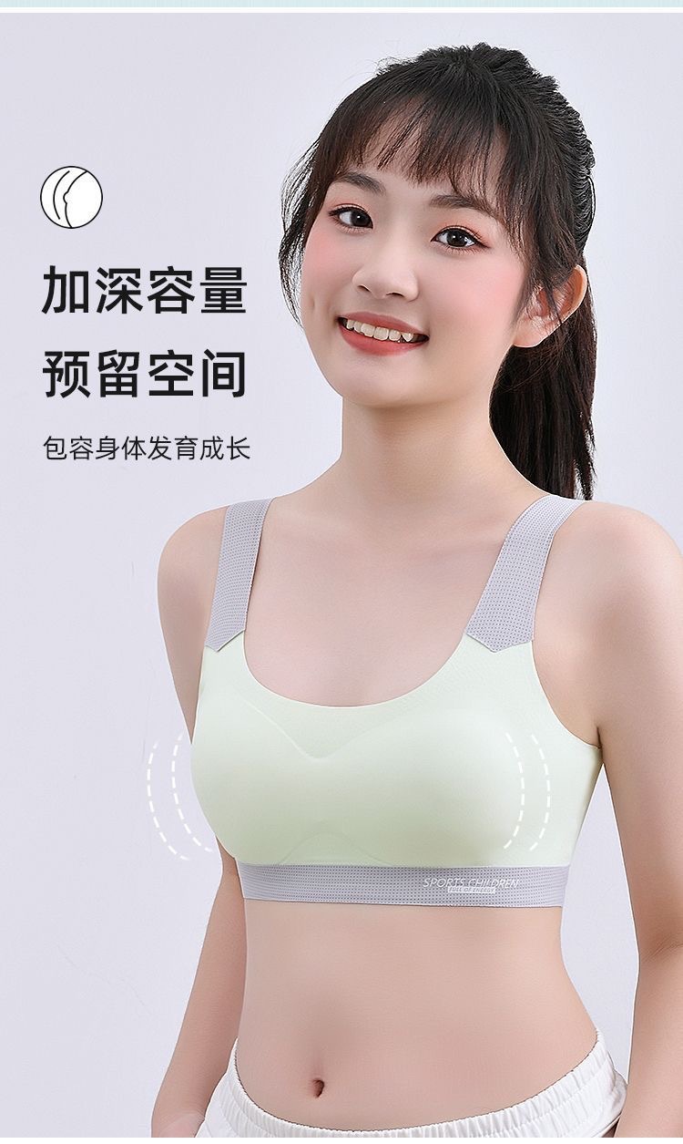 여아 속옷, 청소년 발달기, 중, 고등학생, 무봉제 아이스 실크 브라, 여아 스포츠 충격 방지 조끼스토어 가기
