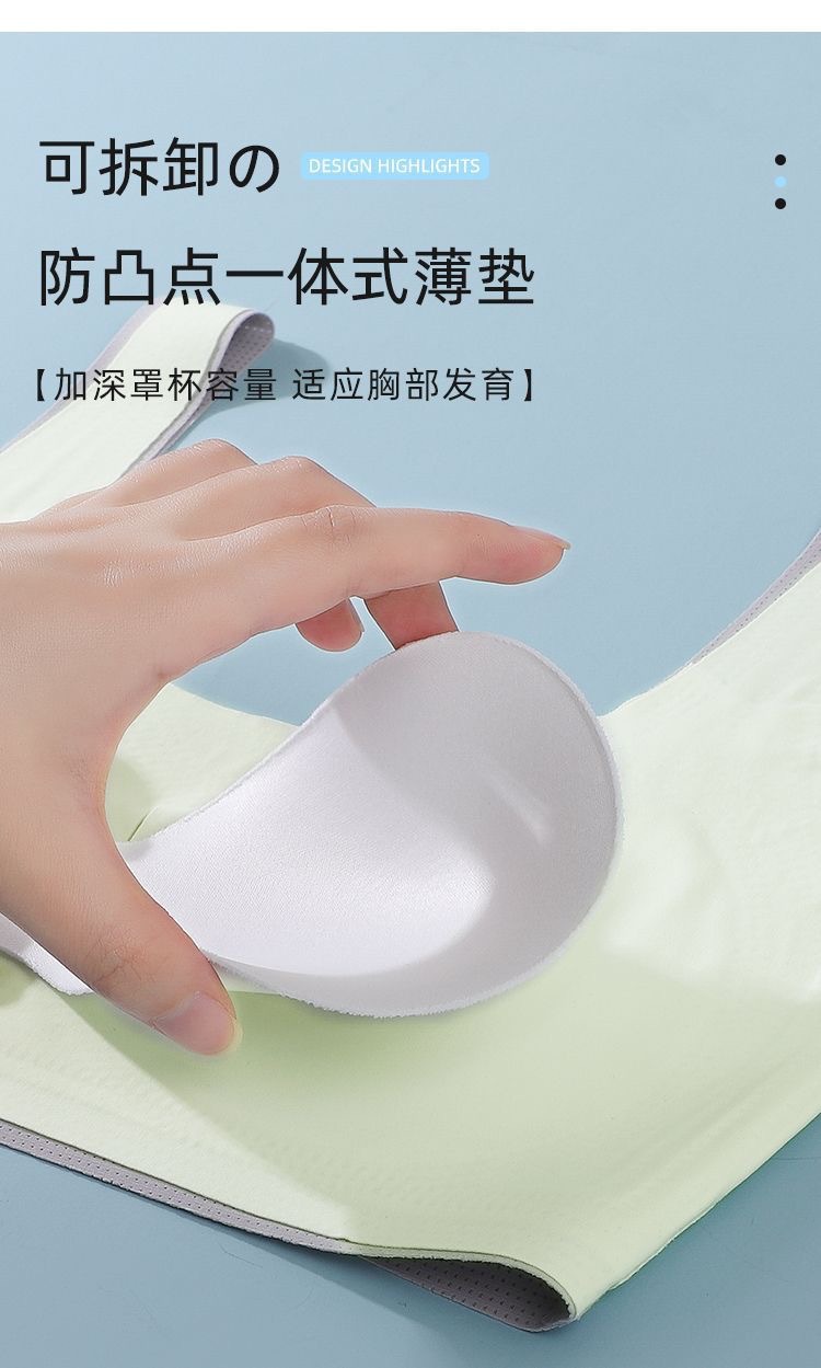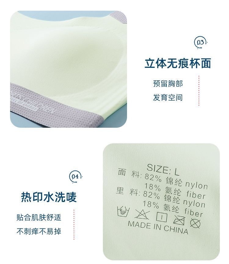 여아 속옷, 청소년 발달기, 중, 고등학생, 무봉제 아이스 실크 브라, 여아 스포츠 충격 방지 조끼