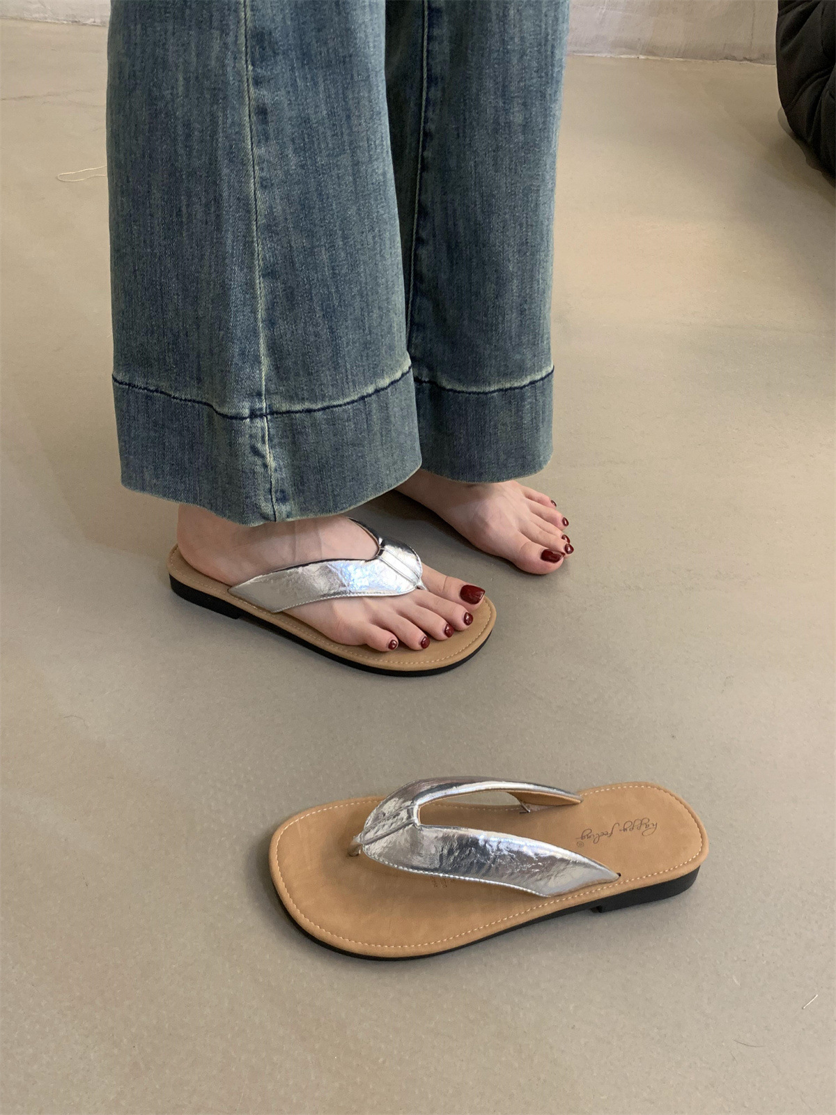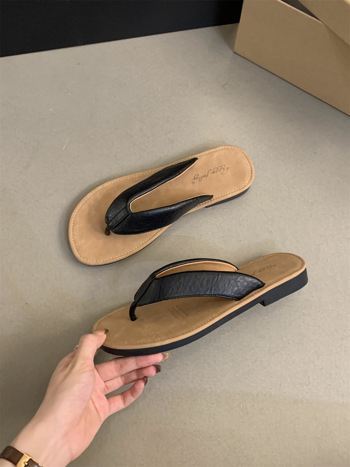 플립 플롭 여성 여름 아우터 신입 한국식 레트로 플립 플롭 홀리데이 요정 플랫 비치 슈즈