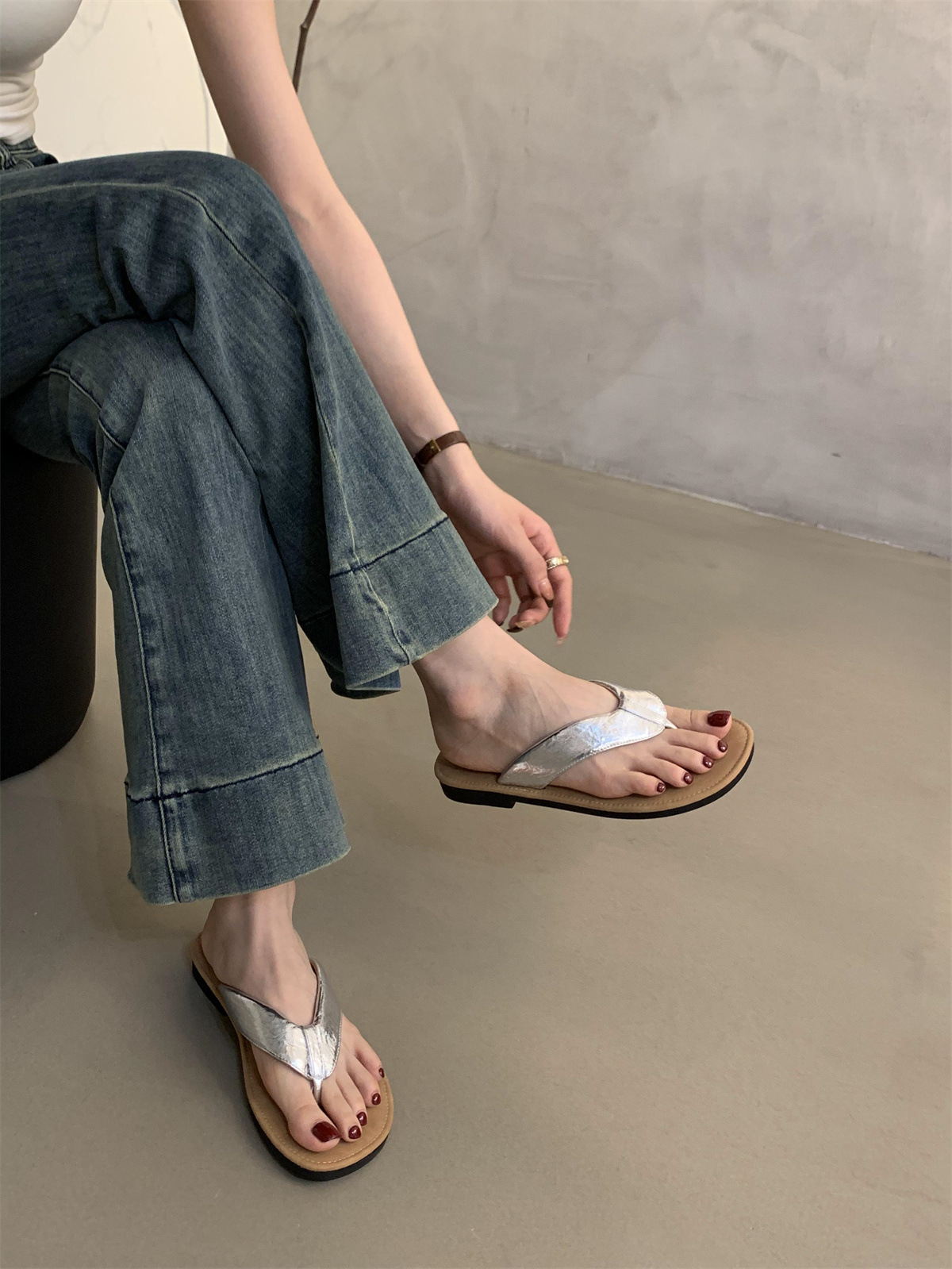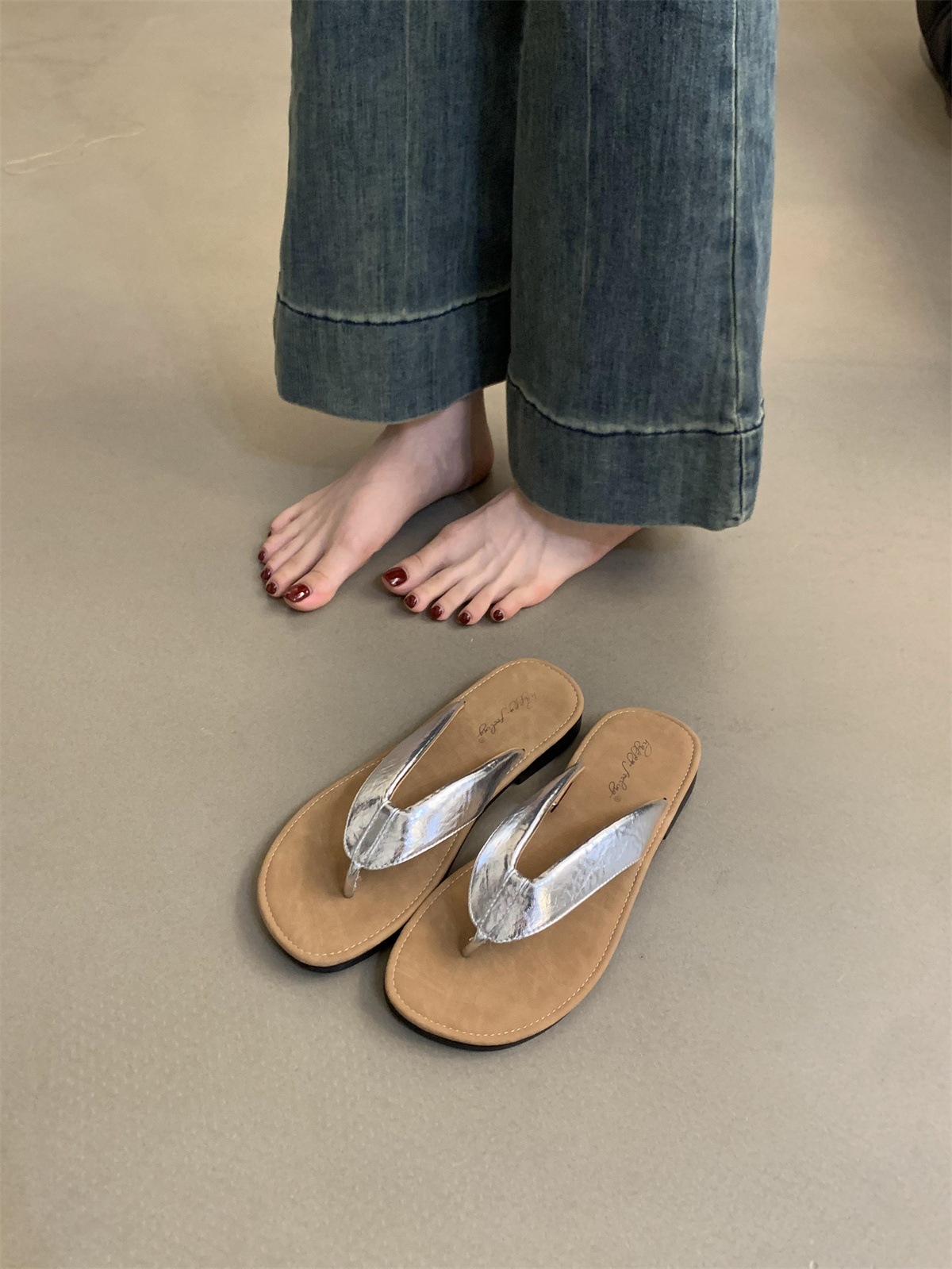 플립 플롭 여성 여름 아우터 신입 한국식 레트로 플립 플롭 홀리데이 요정 플랫 비치 슈즈스토어 가기
