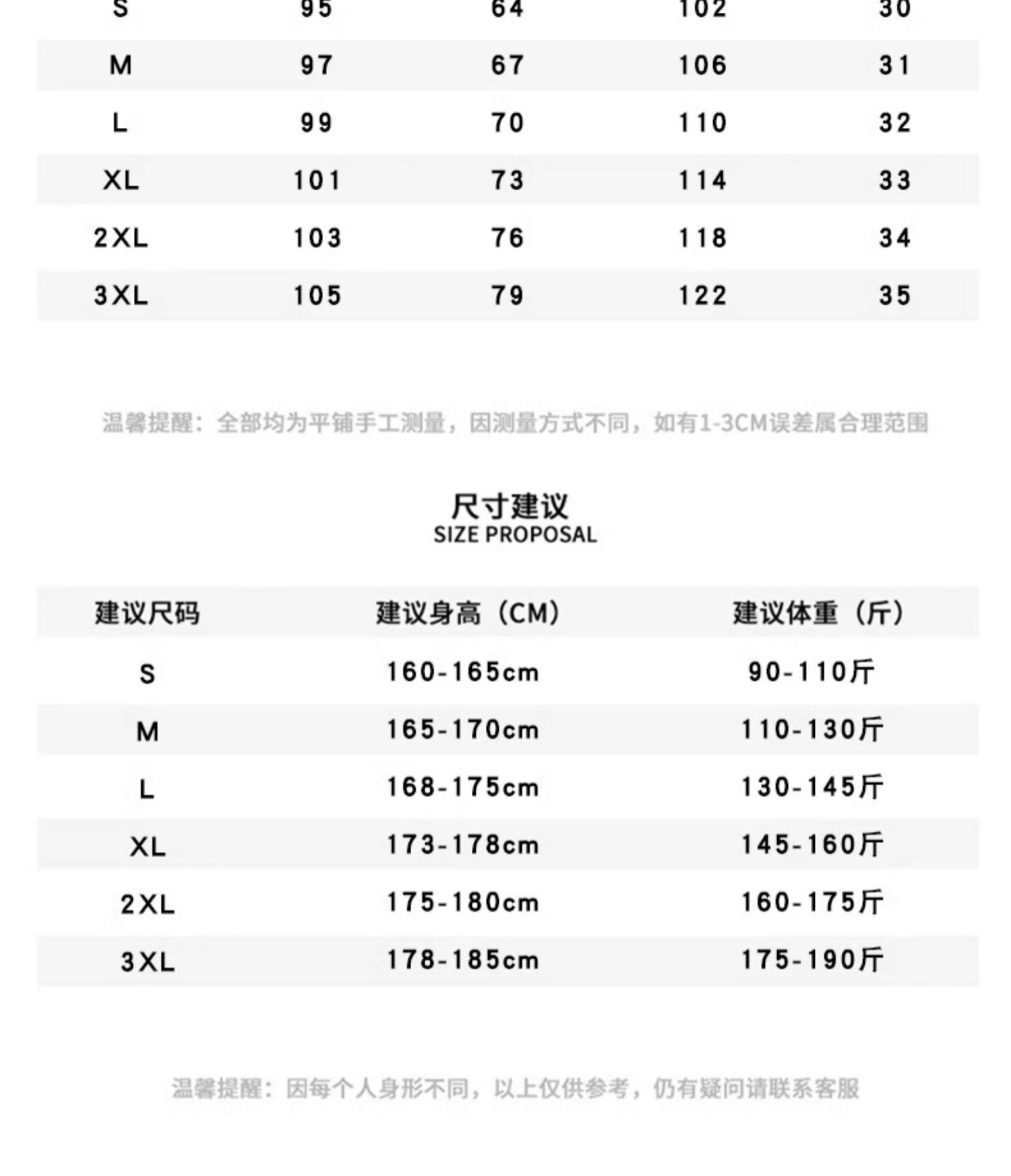• 3XL (키 178-185CM, 몸무게 87.5-95kg )