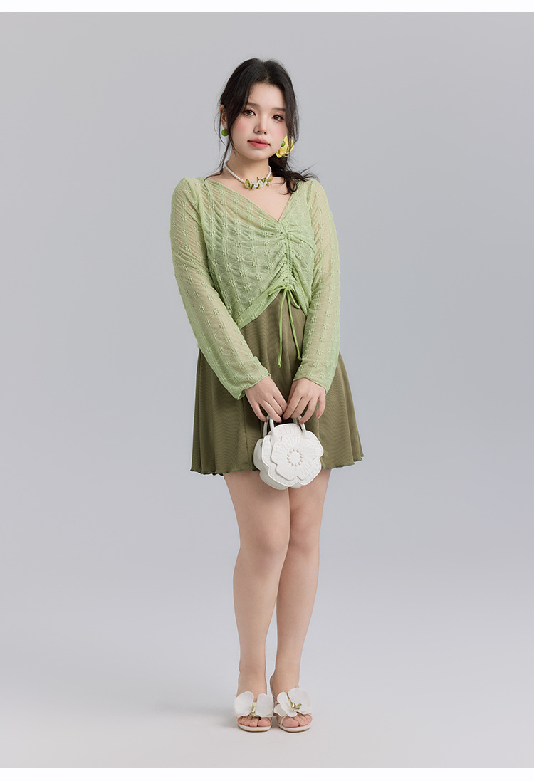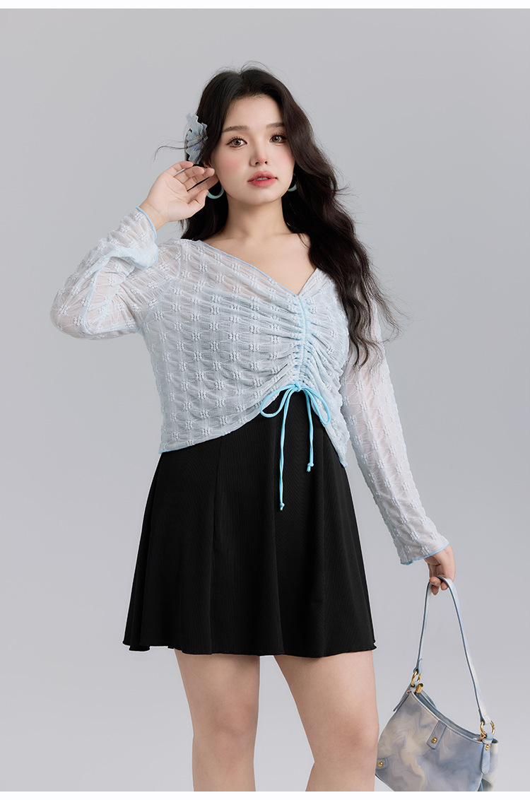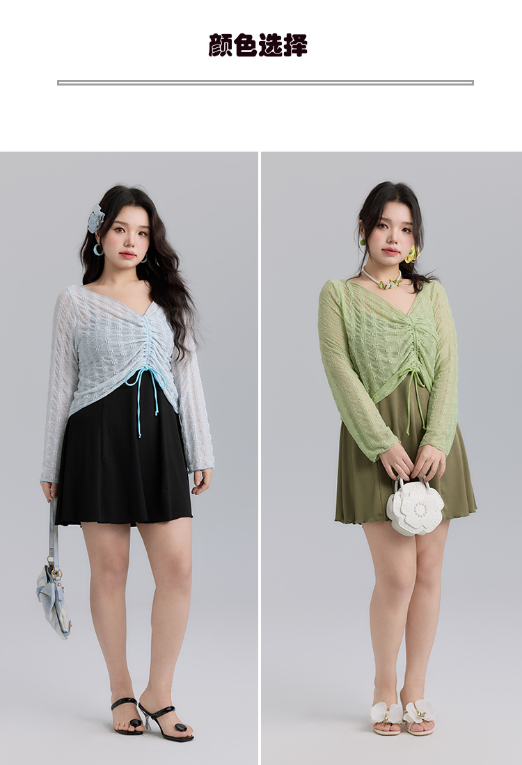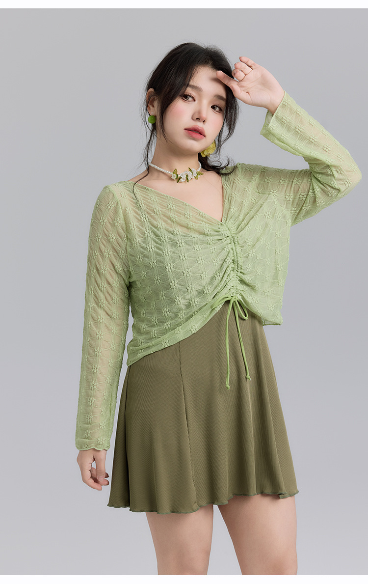 여성용 수영복 2025 여름 플러스 사이즈 뚱뚱한 mm 100kg 배를 덮고 슬리밍 보수적 인 스커트 스타일 긴팔 블라우스 화이트 수영복스토어 가기