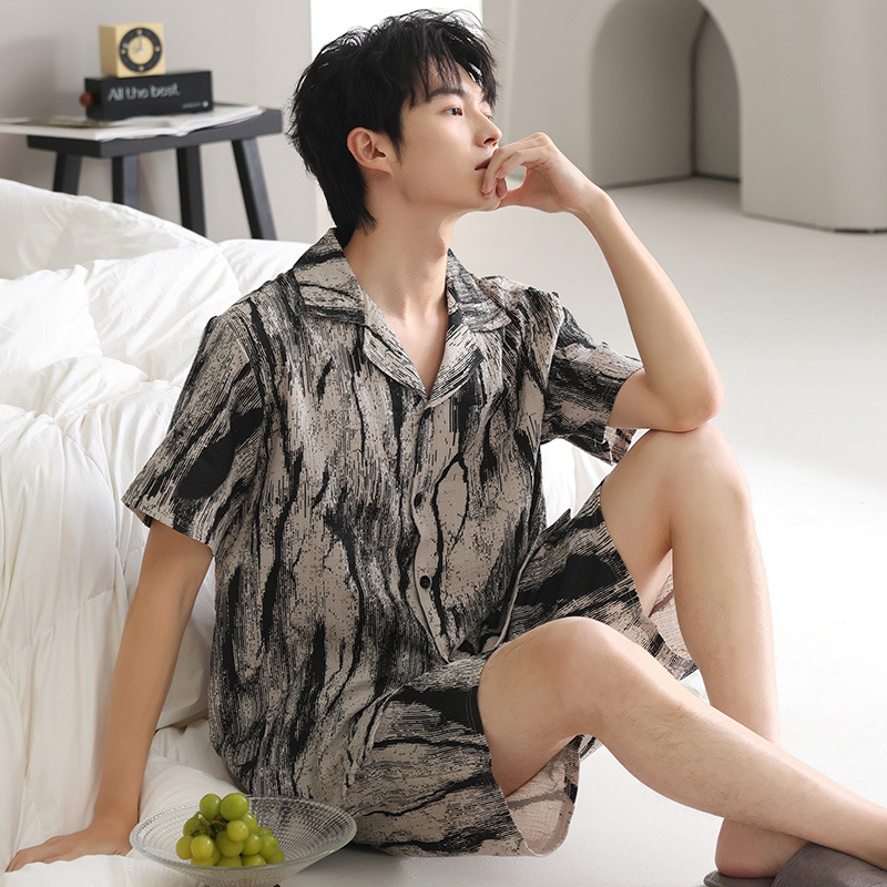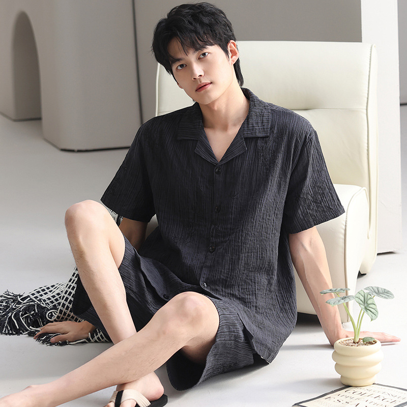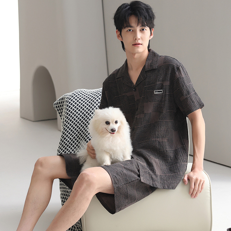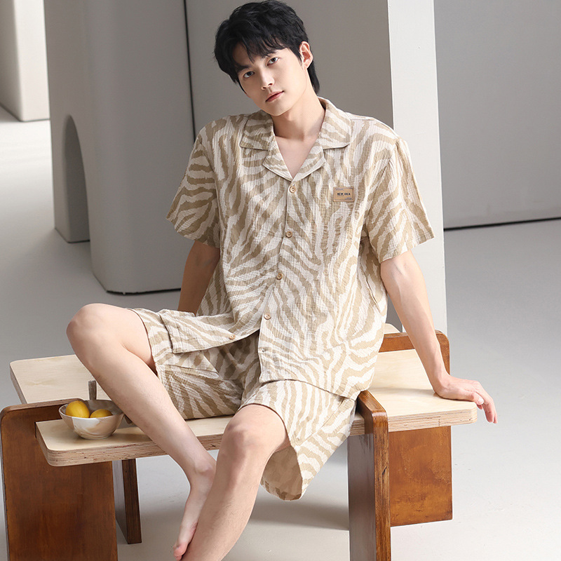 100% 면 거즈 남성용 순면 잠옷 남성용 여름 반팔 가디건 캐주얼 웨어러블 남성용 면 가정복스토어 가기